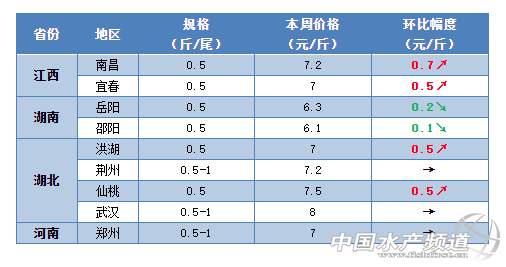 | 中國(guó)水產(chǎn)頻道原創(chuàng)報(bào)道, 鯽魚(yú)賣(mài)斷貨,多地塘頭價(jià)再次出現(xiàn)大漲。廣東中山半斤的鯽魚(yú)賣(mài)到8元/斤,江西樟樹(shù)地區(qū)彭澤鯽最高賣(mài)到9元/斤,江蘇淮半斤起步的塘頭賣(mài)到10元/斤 文/水產(chǎn)前沿鄭鵬飛 一周要聞 鯽魚(yú)供不應(yīng)求!近期全國(guó)各地鯽魚(yú)缺貨比較嚴(yán)重,大規(guī)格鯽魚(yú)已經(jīng)賣(mài)斷貨,多地塘頭價(jià)再次出現(xiàn)大漲。 流通商表示市場(chǎng)上鯽魚(yú)非常缺貨 廣東中山地區(qū)半斤鯽魚(yú)賣(mài)到8元/斤 江蘇淮安地區(qū)半斤以上的鯽魚(yú)塘頭價(jià)漲到10元/斤 據(jù)了解,目前廣東中山地區(qū)有部分流通商半斤的鯽魚(yú)已經(jīng)出到8元/斤。目前,肇慶地區(qū)半斤的鯽魚(yú)塘頭價(jià)賣(mài)到6.7元/斤,較之前上漲了0.4元/斤。廣西武宣地區(qū)半斤以上的鯽魚(yú)塘頭價(jià)賣(mài)到8元/斤,較上周也是上漲了1元/斤。湖北仙桃地區(qū)半斤的鯽魚(yú)塘頭價(jià)賣(mài)到7.5元/斤,較之前上漲了0.5元/斤。江西樟樹(shù)地區(qū)湘云鯽塘頭賣(mài)7元/斤,彭澤鯽賣(mài)到8-9元/斤;南昌地區(qū)半斤以上的鯽魚(yú)最新塘頭價(jià)賣(mài)7.2元/斤,較之前上漲0.7元/斤。江蘇淮安涇口地區(qū)半斤的鯽魚(yú)塘頭已經(jīng)賣(mài)到8.5元/斤,有部分地區(qū)半斤起步的鯽魚(yú)塘頭已經(jīng)賣(mài)到10元/斤。河北唐山地區(qū)半斤的鯽魚(yú)塘頭價(jià)已經(jīng)賣(mài)到9元/斤;目前四川德陽(yáng)地區(qū)大一點(diǎn)的鯽魚(yú)塘頭最少賣(mài)到8.5元/斤。遼寧沈陽(yáng)地區(qū)半斤的鯽魚(yú)塘頭賣(mài)到8元/斤,較之前上漲0.5-1元/斤。養(yǎng)殖戶表示,物以稀為貴,近期鯽魚(yú)行情繼續(xù)看漲。 江西樟樹(shù)地區(qū)鯽魚(yú)塘頭價(jià)賣(mài)到9元/斤 各區(qū)域行情、報(bào)價(jià) 華南地區(qū) 本周華南地區(qū)的鯽魚(yú)塘頭價(jià)整體呈現(xiàn)上漲勢(shì)頭。據(jù)了解,目前廣東中山地區(qū)半斤的鯽魚(yú)最新塘頭價(jià)賣(mài)6.5元/斤,有部分流通商半斤的鯽魚(yú)已經(jīng)給到8元/斤。從養(yǎng)殖戶了解到,最近肇慶地區(qū)半斤的鯽魚(yú)塘頭價(jià)賣(mài)到6.7元/斤,較之前上漲了0.4元/斤。目前廣西武宣地區(qū)半斤以上的鯽魚(yú)塘頭價(jià)賣(mài)到8元/斤,較上周也是上漲了1元/斤,桂林地區(qū)半斤以上的鯽魚(yú)最新塘頭價(jià)繼續(xù)維持在7-7.5元/斤,行情基本保持穩(wěn)定。 華中地區(qū) 本周華中地區(qū)的鯽魚(yú)行情也是繼續(xù)看漲,大部分地區(qū)還是繼續(xù)穩(wěn)中有升。據(jù)養(yǎng)殖戶介紹,目前湖北仙桃地區(qū)半斤的鯽魚(yú)塘頭價(jià)賣(mài)到7.5元/斤,較之前上漲了0.5元/斤;洪湖地區(qū)半斤的鯽魚(yú)塘頭繼續(xù)維持在7元/斤左右;隨州地區(qū)半斤的鯽魚(yú)最新塘頭價(jià)也是賣(mài)到7元/斤左右。本周江西地區(qū)的鯽魚(yú)塘頭價(jià)也是繼續(xù)有明顯上漲,目前樟樹(shù)地區(qū)湘云鯽塘頭賣(mài)7元/斤,彭澤鯽賣(mài)到8-9元/斤;南昌地區(qū)半斤以上的鯽魚(yú)最新塘頭價(jià)賣(mài)7.2元/斤,較之前上漲0.7元/斤;新余地區(qū)半斤的鯽魚(yú)最新塘頭價(jià)賣(mài)6元/斤,養(yǎng)殖戶表示物以稀為貴,近期鯽魚(yú)行情繼續(xù)看漲。最近湖南地區(qū)的魚(yú)價(jià)有小幅回落,本周鯽魚(yú)整體上還是保持平穩(wěn),局部也是有所下滑。據(jù)養(yǎng)殖戶介紹,目前長(zhǎng)沙地區(qū)半斤的鯽魚(yú)最新塘頭價(jià)賣(mài)6元/斤左右,較之前有0.2元/斤的回落。 華東地區(qū) 由于目前鯽魚(yú)缺貨比較嚴(yán)重,大規(guī)格鯽魚(yú)基本已經(jīng)賣(mài)斷貨,本周華東地區(qū)的鯽魚(yú)行情繼續(xù)保持上升勢(shì)頭。據(jù)養(yǎng)殖戶介紹,目前浙江衢州地區(qū)半斤的鯽魚(yú)最新塘頭價(jià)繼續(xù)穩(wěn)定在8.5元/斤以上;福建南平地區(qū)半斤以上的鯽魚(yú)塘頭價(jià)也繼續(xù)保持在7-7.5元/斤,行情相對(duì)穩(wěn)定。目前,江蘇淮安涇口地區(qū)半斤的鯽魚(yú)塘頭已經(jīng)賣(mài)到8.5元/斤,有部分地區(qū)半斤起步的鯽魚(yú)塘頭已經(jīng)賣(mài)到10元/斤。 其他地區(qū) 本周西北地區(qū)鯽魚(yú)開(kāi)始供不應(yīng)求,有流通商表示目前甘肅蘭州市場(chǎng)鯽魚(yú)非常缺貨,行情看漲。目前東北、華北和西北地區(qū)的鯽魚(yú)行情也是依然穩(wěn)中有升。據(jù)養(yǎng)殖戶介紹,目前河北唐山地區(qū)半斤的鯽魚(yú)塘頭價(jià)已經(jīng)賣(mài)到9元/斤;四川廣元地區(qū)半斤以上的鯽魚(yú)塘頭價(jià)還繼續(xù)維持在8-8.3元/斤,部分地區(qū)就行保持上漲趨勢(shì)。養(yǎng)殖戶表示,目前四川德陽(yáng)地區(qū)大一點(diǎn)的鯽魚(yú)塘頭最少賣(mài)到8.5元/斤。最近東北地區(qū)的鯽魚(yú)塘頭價(jià)再次出現(xiàn)明顯上漲,目前遼寧沈陽(yáng)地區(qū)半斤的鯽魚(yú)塘頭賣(mài)到8元/斤,較之前上漲0.5-1元/斤,8兩的鯽魚(yú)賣(mài)9.5-10元/斤。 |