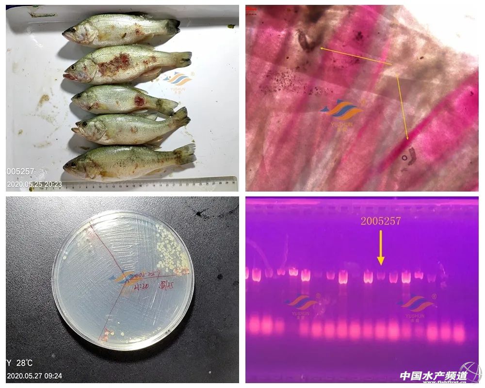 | 中國水產(chǎn)頻道原創(chuàng)報道, 據(jù)鱖鱸前沿最新報道,加州鱸又全線上漲,存塘量日益減少,最高再漲0.8元/斤,后市可能還要漲,但如果你的池塘有了這個“它”... 文/圖活寶源魚病室梁芝源、胡飛、楊紫晴、胡雄 指環(huán)蟲,隸屬于扁形動物門、單殖吸蟲綱,是加州鱸常見的一種寄生蟲,主要寄生于鰓部,在4~6月份感染率很高,但由于其感染數(shù)量不多,或常與其他病原如柱狀黃桿菌、虹彩病毒等混合感染而呈現(xiàn)復雜的病癥,很多養(yǎng)殖戶和技術員輕視了該蟲的危害,導致治療被耽誤、病情進一步惡化。那么,指環(huán)蟲對加州鱸有何危害,如何診治呢?我們整理分析了今年接檢的與指環(huán)蟲感染有關的典型診治病例,以供大家參考。 一、指環(huán)蟲的直接危害 1.1刺激魚體,影響攝食,導致縮料。 2020年6月,廣東肇慶孔老板,使用水槽養(yǎng)殖加州鱸,3條210m3的水槽共計放養(yǎng)了8萬尾加州鱸,全長已達20cm。6月10日開始發(fā)病,攝食變差,死魚日漸增多至兩三百尾/天,遂于6月20日采樣送檢。經(jīng)全面檢測,該加州鱸感染了指環(huán)蟲和柱狀黃桿菌,虹彩病毒呈陰性。綜合考慮,建議其先殺指環(huán)蟲,再拌喂敏感抗菌藥。據(jù)后續(xù)反饋,其6月20號中午使用甲苯咪唑驅(qū)殺指環(huán)蟲,6月21號加州鱸攝食明顯改善,游邊病魚也有所減少。 左:P01,示病魚癥狀;右:P02,示指環(huán)蟲(4*10倍) 1.2損傷鰓絲,阻礙呼吸,直接致死。 2020年4月,廣東順德,網(wǎng)箱養(yǎng)殖加州鱸,2個8m3的網(wǎng)箱共計放養(yǎng)了3000尾全長為3~6cm加州鱸朝苗。4月16日,開始出現(xiàn)零星死魚,并逐漸增多至十幾尾/天,并偶見個別病魚黑身、游邊。4月19日,檢測發(fā)現(xiàn)病魚鰓部有大量指環(huán)蟲,遂使用甲苯咪唑進行驅(qū)殺。據(jù)后續(xù)反饋,4月20日,死魚仍有十幾尾,但攝食明顯好轉(zhuǎn),未觀察到游邊病魚;4月21日,死魚迅速減少,僅發(fā)現(xiàn)幾尾;4月22日,死魚現(xiàn)象消失,攝食恢復正常。 這主要見于全長8cm以下的朝苗階段,如感染了較多的指環(huán)蟲,魚苗呼吸受阻,又遇上惡劣天氣水體溶氧含量低,就很容易出現(xiàn)死魚。 左:P03,示病魚黑身;右:P04,示鰓部大量指環(huán)蟲。 二、指環(huán)蟲的間接危害 2.1誘發(fā)爛嘴、爛鰓病。 2020年5月,佛山順德,池塘水面3畝,水深2米,有全長3cm左右的加州苗6萬尾。5月19日,分篩;5月20日,水體使用復合碘+五黃類中草藥進行消毒;5月22日,開始出現(xiàn)爛嘴、爛尾病,死魚達200多尾;5月23日,使用所謂特效藥“紅粉”進行消毒,效果不理想;遂于5月25日送檢。經(jīng)檢測,該加州鱸苗感染了大量指環(huán)蟲,病灶有少量柱狀黃桿菌。綜合分析,建議其使用甲苯咪唑類殺蟲藥驅(qū)殺指環(huán)蟲,并拌喂適量敏感抗菌藥。據(jù)后續(xù)反饋,殺蟲后死魚迅速減少,死魚現(xiàn)象在內(nèi)服敏感抗菌藥后完全消失,療效顯著。 對于小規(guī)格加州鱸苗種,感染指環(huán)蟲后很容易繼發(fā)感染柱狀黃桿菌而出現(xiàn)爛嘴;對于大規(guī)格加州鱸苗種和中成魚,感染指環(huán)蟲后則容易繼發(fā)感染柱狀黃桿菌而出現(xiàn)爛鰓。當指環(huán)蟲與柱狀黃桿菌混合感染時,不殺蟲則使治療難度大大增加,即使治愈后也很容易復發(fā)。 左:P03,示病魚;右:P04,示鰓部指環(huán)蟲。 2.2誘發(fā)花身、鰓蓋潰爛等。 2020年5月,佛山順德,池塘水面5畝,水深2.5米,有全長15~20cm左右的加州苗4.5萬尾。5月25日送檢,經(jīng)交流,該塘已發(fā)病近一個星期,死魚癥狀以花身、爛身、鰓蓋潰爛為主,用過硫酸銅+碘、拌喂過治療爛身的專用藥,但效果都不理想。經(jīng)檢測,該加州鱸感染了指環(huán)蟲,內(nèi)臟未分離培養(yǎng)到疑似致病菌,蛙屬虹彩病毒呈弱陽性。綜合分析,建議其使用甲苯咪唑類殺蟲藥驅(qū)殺指環(huán)蟲,以減小刺激,并拌喂膽汁酸、五黃類中草藥等。據(jù)后續(xù)反饋,該塘主于25號傍晚潑灑高錳酸鉀+碘,但病情未見明顯好轉(zhuǎn),5月29號,殺蟲,31號,再次殺蟲,病情逐漸好轉(zhuǎn),至6月4日,死魚減至二三十尾/天。(編號:2005257) 對于加州鱸中成魚,雖然不易出現(xiàn)爛嘴、爛鰓病,但感染指環(huán)蟲后,魚體不舒服而摩擦塘基、底泥等,繼而感染細菌出現(xiàn)鰓蓋潰爛或花身、爛身,導致死魚。 2.3造成刺激,降低免疫力,加重病毒病的病情。 2020年6月,佛山順德,池塘水面12畝,水深1.7米,有全長10cm左右的加州鱸12萬尾。該塘原有加州鱸苗約8萬尾,于5月31日補投4萬余尾,次日開始發(fā)病,死魚逐漸增多,至6月11日達3000余尾/天,采樣送檢。經(jīng)檢測,該加州鱸苗感染了指環(huán)蟲,未檢出疑似致病菌,蛙屬虹彩病毒呈強烈陽性。綜合近期類似病例的診治經(jīng)驗,我們建議其使用甲苯咪唑類殺蟲藥驅(qū)殺指環(huán)蟲,解除寄生蟲對魚體的刺激,同時控料投喂,并拌膽汁酸、五黃類中草藥、多維等,促進體質(zhì)恢復。據(jù)后續(xù)反饋,6月12日殺蟲(甲苯咪唑),6月13日死魚略有增多,達4000余,但游邊魚明顯減少;6月14日,死魚約1200條;6月15日,死魚400余條;6月16日,死魚100余條,病情基本得到控制。 蛙屬虹彩病毒病是加州鱸常見的一種病毒病,在3~5月發(fā)病率很高;該病毒的毒力相對較弱,其致死率與水質(zhì)、寄生蟲等關系較大。如有指環(huán)蟲的存在,會導致病情嚴重惡化,驅(qū)殺指環(huán)蟲,解除其對魚體的刺激,可以一定程度減緩病情,促進康