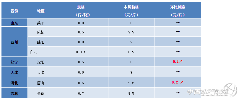 文/水產(chǎn)前沿 鄭鵬飛 一周要聞 湖南長沙市場鯽魚缺貨,后期行情看漲 湖南常德地區(qū)鯽魚缺貨 中國水產(chǎn)頻道原創(chuàng)報道,本周全國多地鯽魚塘頭價再次出現(xiàn)明顯的上漲勢頭。據(jù)了解,最近湖南長沙、常德等地鯽魚非常缺貨,目前長沙地區(qū)半斤的鯽魚塘頭價賣到6.8元/斤,批發(fā)市場可以賣到7.5元/斤,養(yǎng)殖戶表示目前市場上鯽魚非常好賣,估計后段時間還會缺魚。江西贛州地區(qū)半斤的鯽魚超市最新賣價10.8元/斤,宜春地區(qū)1斤左右的鯽魚上車價可以賣到8.5元/斤。湖北仙桃地區(qū)半斤的鯽魚塘頭賣8.5元/斤,洪湖地區(qū)塘頭賣10元/斤左右,隨州地區(qū)塘頭賣9.8元/斤,市場價賣到12元/斤。 湖北隨州鯽魚行情繼續(xù)走俏 浙江地區(qū)半斤鯽魚賣到10元/斤,一周暴漲1元/斤 外省魚車增多,福建鯽魚、草魚塘頭價均出現(xiàn)上漲 從養(yǎng)殖戶了解到,最近福建地區(qū)的鯽魚塘頭價也是上漲了0.5元/斤左右;浙江衢州半斤的鯽魚塘頭價已經(jīng)賣到10元/斤,再漲1元/斤;遼寧沈陽地區(qū)半斤的鯽魚塘頭賣7.5-8元/斤,7-8兩的鯽魚塘頭賣10-12元/斤;四川鯽魚依然堅挺,成都市場7兩左右的鯽魚最新批發(fā)價10元/斤;廣東肇慶地區(qū)半斤左右的鯽魚最新塘頭價賣到8元/斤,上漲1元/斤,中山地區(qū)1兩的鯽魚都賣到7元/斤;有養(yǎng)殖戶表示最近河北唐山地區(qū)的鯽魚塘頭價也開始漲了。 未來鯽魚行情能否再創(chuàng)新高?歡迎留言分享! 各區(qū)域行情、報價 華南地區(qū) 本周華南地區(qū)的鯽魚塘頭價繼續(xù)保持上升勢頭,近期局部地區(qū)鯽魚行情上漲明顯。從養(yǎng)殖戶了解安東,目前廣東肇慶地區(qū)半斤左右的鯽魚最新塘頭價賣到8元/斤,較之前上漲了1元/斤;廣州地區(qū)半斤左右的鯽魚最新賣價8元/斤。從流通商了解到,目前中山地區(qū)半斤的鯽魚塘頭賣8元/斤,1兩的鯽魚都可以賣到7元/斤。本周廣西地區(qū)的鯽魚塘頭價還是繼續(xù)維持穩(wěn)定,目前桂林地區(qū)半斤的鯽魚塘頭價還是繼續(xù)穩(wěn)定在7-7.5元/斤之間,沒有出現(xiàn)明顯變動。 華中地區(qū) 本周華中地區(qū)的鯽魚塘頭價繼續(xù)呈現(xiàn)明顯的上漲趨勢,多地行情再次出現(xiàn)大漲。 從養(yǎng)殖戶了解到,目前湖南長沙地區(qū)半斤的鯽魚塘頭價賣6.2-6.8元/斤,批發(fā)市場可以賣到7.5元/斤,養(yǎng)殖戶表示現(xiàn)在長沙市場魚非常好賣,估計后段時間還會缺魚。據(jù)了解,目前常德市場鯽魚也是非常缺貨,行情看漲。 本周江西地區(qū)的鯽魚行情也是依然堅挺,目前贛州地區(qū)半斤的鯽魚超市最新賣價10.8元/斤;宜春地區(qū)1斤左右的鯽魚上車價賣到8.5元/斤。 本周湖北地區(qū)的鯽魚行情依然堅定。據(jù)養(yǎng)殖戶介紹,目前仙桃地區(qū)半斤的鯽魚塘頭賣8.5元/斤;隨州半斤的鯽魚市場價已經(jīng)賣到12元/斤;洪湖地區(qū)半斤的鯽魚塘頭在10元/斤左右,較上周有所回落,但目前行情依然保持高位。 華東地區(qū) 本周華東地區(qū)的鯽魚行情有漲有跌,多個地區(qū)再次出現(xiàn)大幅上漲。有養(yǎng)殖戶反映,最近福建地區(qū)的鯽魚塘頭價上漲了0.5元/斤左右,近期外省的魚車比較多,目前三明、南平等地半斤以上的鯽魚塘頭可以賣到8.5元/斤。本周浙江衢州地區(qū)的鯽魚也是再次暴漲,目前衢州地區(qū)半斤的鯽魚塘頭價已經(jīng)賣到10元/斤,較山上周上漲1元/斤。 其他地區(qū) 近期東北地區(qū)的鯽魚不多,整塘的鯽魚幾乎沒有了,目前基本都是套養(yǎng)的鯽魚,近期行情變化不大。據(jù)養(yǎng)殖戶介紹,目前遼寧沈陽地區(qū)半斤的鯽魚塘頭賣7.5-8元/斤,7-8兩的鯽魚塘頭賣10-12元/斤。 最近西北地區(qū)的鯽魚行情還是保持相對穩(wěn)定,暫時沒有出現(xiàn)明顯波動。從流通商了解到,目前甘肅蘭州市場半斤的鯽魚最新報價10元/斤在左右,基本還是維持上周水平。 本周西南地區(qū)的鯽魚行情還是以穩(wěn)定為主,目前四川地區(qū)半斤的鯽魚塘頭價在8.5-9.5元/斤之間,成都市場7兩左右的鯽魚最新批發(fā)價10元/斤,維持上周水平。 本周華北地區(qū)的鯽魚塘頭價有上升趨勢。受北京市場開放的拉動,近期河北一些地區(qū)魚價出現(xiàn)上漲。有養(yǎng)殖戶反映,最近唐山地區(qū)的鯽魚塘頭價也開始漲了,目前半斤的鯽魚塘頭價在9元/斤以上。 |