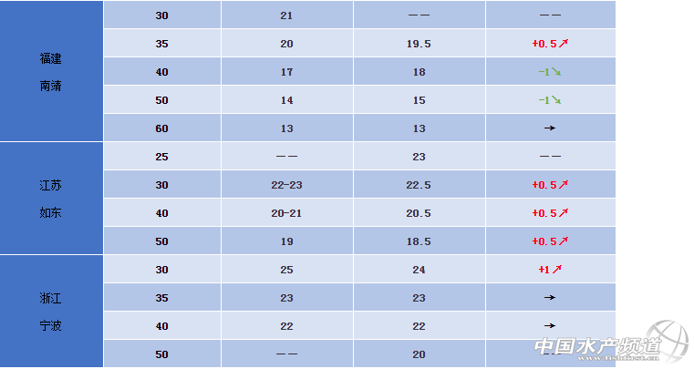 文/圖 水產(chǎn)前沿 植銀素 本周要聞及行情 中國水產(chǎn)頻道原創(chuàng)報道,近一周,國內(nèi)蝦價在低迷行情下各自發(fā)展,隨著各地成品蝦和存塘量變化,蝦價也出現(xiàn)不用趨勢。先看廣西、福建和江浙市場,在本周都出現(xiàn)上漲,當(dāng)然由于供求關(guān)系上漲最明顯的是江浙市場。江蘇棚蝦售罄,外塘蝦未至,蝦價或許還有上漲空間,但是容易面臨有價無蝦的現(xiàn)象;浙江現(xiàn)在蝦價也在穩(wěn)中求漲,慈溪市場在近兩周都表現(xiàn)較好行情。福建蝦價在本周跟著江浙上漲1-2元/斤,但是市場表現(xiàn)起起落落,不算穩(wěn)定,廣西養(yǎng)殖戶昨晚就向筆者透露,大蝦將要漲價的信息,據(jù)了解今年白蝦養(yǎng)殖成功率不高,整體來說現(xiàn)在已有塘頭空塘了,貨源減少引起價格上漲,對比上周漲幅約在1元/斤左右,大蝦行情向好。廣東潮汕地區(qū)今年養(yǎng)殖成功率也不高,目前活蝦供應(yīng)吃緊,蝦價有所上漲。 目前,廣東珠三角、湛江、海南蝦價依然低迷。珠海地區(qū)目前成品蝦有限,投苗一個月的或者規(guī)格在80條以下的塘口居多;中山地區(qū)蝦價對比上周變化不大,但是盡管是25頭的大蝦價格也不高,甚至不到20元/斤;江門地區(qū)價格更是慘不忍睹,40頭蝦對比上周直跌4-5元/斤。養(yǎng)殖戶表示,沒有任何節(jié)假日拉動,價格只會繼續(xù)跌跌不休!敖裉鞆V州市場蝦車排到外面馬路了,就是因?yàn)槔锩娴奈r沒賣完,大爛市!”一蝦販說道。湛江地區(qū)蝦價也同樣低迷,一直說養(yǎng)大蝦追產(chǎn)量保本的養(yǎng)殖戶今天也無奈透露,越大越虧!35頭蝦才17元/斤,今年的蝦價已經(jīng)“沒救了”。 各地白對蝦價格一覽 說明:上述報價可能會因區(qū)域、規(guī)格、品質(zhì)和時間等因素的不同而會產(chǎn)生差異,在此僅供參考。 編號:dxbj2020-7-25 |