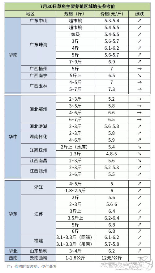 | 中國水產(chǎn)頻道報道, 連日來,草魚行情一片大好,成魚價格持續(xù)增長,苗價漲勢也緊隨其后。此前受洪水影響,湖北、湖南、江西等多地魚塘垮堤,草魚跑塘嚴重,損失高達數(shù)萬斤。期間,有受災(zāi)地區(qū)的養(yǎng)殖戶大批賣魚,以規(guī)避極端天氣帶來的風(fēng)險。洪水過后,受災(zāi)地區(qū)的草魚收成不足,流出數(shù)量減少,當(dāng)?shù)佤~車前往外省收魚,一定程度上抬升了外圍魚價。 隨著各地草魚存塘量不斷減少以及流通逐步恢復(fù),草魚需求量不斷增加,帶動價格上漲。業(yè)內(nèi)人士預(yù)估,未來一周的魚價有望持續(xù)走高,各地將迎來難得的好價,可謂“柳暗花明又一村”! 各地行情簡介 華南地區(qū) 廣西梧州地區(qū)5斤草魚價格7元/斤,與上周基本持平。南寧地區(qū)5斤以上報6.5元/斤,比上周跌0.2元左右。玉林地區(qū)4-5斤價格為7元/斤,5-7斤報7.3元/斤,魚苗10元斤,現(xiàn)階段魚價基本持平。 廣東珠海地區(qū)超市鯇與統(tǒng)級同價,報5.4-5.5元/斤,比早前上漲0.3元/斤。3斤草魚報5.6-5.7元/斤,4斤的6.1-6.2元/斤,5斤的報價5.6-5.7元,7-9斤的大魚已升至6.9元。中山地區(qū)超市鯇為5.3-5.4元/斤,同比上周漲0.2.-0.3元/斤。由于華東、華中地區(qū)受洪水影響,魚塘受災(zāi),草魚收成不足,對廣東成魚及苗種需求有所增加,拉動了廣東地區(qū)魚價和苗價的上漲。 華中地區(qū) 湖北鄂州地區(qū)2-3斤的草魚最新塘頭價為5.2元/斤,3-5斤的報5.8元/斤,4-6斤的報6.6元/斤,6-7斤的報6.5元/斤。洪湖地區(qū)2-3斤的草魚價格為5.6-5.8元/斤,后市預(yù)計將漲到6元。受水災(zāi)影響,養(yǎng)殖戶大批量賣魚,目前大草魚存塘量較少,小草魚存量相對多,帶動草魚價格整體上漲。但整體而言,目前的價格呈現(xiàn)小幅震蕩的格局,漲跌趨勢并不明顯。 據(jù)鄂州的從業(yè)者透露,此次水災(zāi)一定程度上挫傷了部分養(yǎng)殖戶的積極性。出于對極端天氣造成風(fēng)險的擔(dān)憂,有養(yǎng)殖戶的養(yǎng)殖投資意愿比去年大幅降低,表現(xiàn)在水災(zāi)期間,養(yǎng)殖戶投喂的積極性不高,投喂量與動保產(chǎn)品使用量較小。目前,內(nèi)湖里的水位尚未完全退下,只有等水位退下來,養(yǎng)殖戶們心里懸著的石頭才能落地。 因湖北安徽的池塘魚價格稍低,外地魚車轉(zhuǎn)往鄂、皖兩地拉魚,來江西的車輛有所減少,導(dǎo)致江西地區(qū)局部地區(qū)的草魚價格出現(xiàn)一定程度下滑。其中,江西撫州地區(qū)2斤以上水庫草魚的價格為5.4元/斤,1.3斤左右統(tǒng)貨報4.8-5.0元/斤,近一周內(nèi)跌了0.1-0.2元/斤;江西南昌地區(qū)因此前草魚價格好,出魚量大,加上市場上撈網(wǎng)魚增多,最新魚價也比上周下跌0.4-0.5元/斤,目前2-3斤的草魚價格為5.6元/斤。江西贛州地區(qū)2-3斤的草魚為5.2-5.3元/斤,2-6斤的價格為5.5元/斤,漲勢趨緩。湖南懷化地區(qū)2~3斤的草魚價格為5.8元/斤,4-6斤的5.9元/斤,價格持續(xù)上漲。 華東地區(qū) 浙江地區(qū)4-5斤的草魚最新塘頭價為5元/斤, 1.8-2.5斤的小草魚已突破6元/斤,價格表現(xiàn)良好。江蘇地區(qū)2斤的草魚價格為5.6元/斤,3斤的報價6元/斤,3.5斤以上的6.2-6.4元/斤,價格小漲0.2元/斤。駱馬湖地區(qū)2斤草魚報價5.4元/斤,2-3斤的5.6-6元/斤,3斤以上的6.4元/斤,價格同比六月約漲1元/斤。但由于目前成魚的存塘量少,一直下雨引發(fā)嚴重孢子蟲病感染,因此目前魚價增幅不大。業(yè)內(nèi)人士預(yù)估,江蘇地區(qū)未來一周內(nèi)的魚價漲勢趨緩,或可能止?jié)q。 受汛情影響,江西、安徽兩地魚車到福建購魚,拉動福建地區(qū)草魚價格的上漲。日前,福建3.1-3.3斤的網(wǎng)箱草魚價格在6.1-6.2元/斤,水庫吊網(wǎng)的成魚價格在5.7-5.8元/斤,后市魚價與省外洪水情況密切相關(guān)。存塘方面,由于去年的成魚都留到今年出售,所以存塘量依然很大。 其他地區(qū) 山東墾利地區(qū)3-4斤的草魚價格為6.2元/斤,價格持續(xù)上漲。云南曲靖地區(qū)魚塘水庫1-1.8公斤的草魚價格為12元/公斤,與上月持平。 |