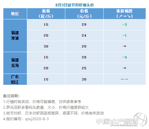 | 中國水產(chǎn)頻道原創(chuàng)報(bào)道, 文/ 水產(chǎn)前沿 何鴻浩 一周要聞 1、整體蝦市持續(xù)下行 近期,影響蝦產(chǎn)業(yè)的消息較多,其中有利有弊,目前白蝦有回漲的跡象,但羅蝦、斑節(jié)暫無明顯趨勢(shì)。有中山從業(yè)者表示,白蝦與羅蝦的價(jià)格趨勢(shì)相反,白蝦低、羅蝦高,所以現(xiàn)在價(jià)格還能穩(wěn)住。浙江從業(yè)者同樣表示,羅氏沼蝦更“保值”,即便是跌價(jià),跌幅也不會(huì)太大。 2、羅氏沼蝦兩極分化 本周珠三角市場(chǎng)羅氏沼蝦價(jià)格持續(xù)下滑,市場(chǎng)情況不明朗。珠三角流通從業(yè)者表示,近期難市,蝦不好賣,羅氏蝦也是一樣。往年也是6、7月不好做,但今年可能會(huì)延長,畢竟消費(fèi)者消費(fèi)能力變?nèi)趿恕幉◤臉I(yè)者表示,本地市場(chǎng)羅蝦存塘已空,最近都是從周邊區(qū)域拿蝦,但休漁結(jié)束梭子蟹上市,對(duì)市場(chǎng)造成一定沖擊,后市蝦價(jià)或許有較大波動(dòng)。 3、斑節(jié)對(duì)蝦持續(xù)走低 本周各地斑節(jié)對(duì)蝦價(jià)格走勢(shì)仍然較弱,普遍為降價(jià)情況。其中,福建大規(guī)格蝦也開始走低,小規(guī)格蝦已觸底,暫無變化。珠三角從業(yè)者表示,近期蝦一直跌價(jià),大蝦也賣不出價(jià)錢,主要還是消費(fèi)端不給力。 |