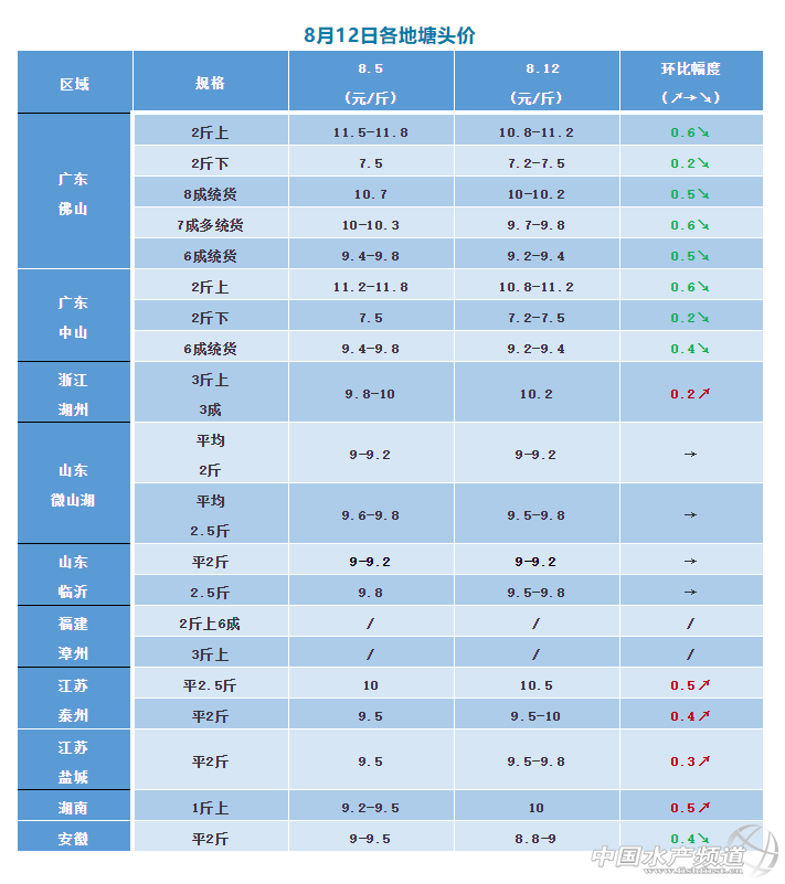 | 中國水產(chǎn)頻道原創(chuàng)報(bào)道, 魚價(jià)有漲有跌,批發(fā)價(jià)最高12.3元/斤,統(tǒng)貨最高漲0.5元/斤,黑芝麻飆至1300元/萬尾,后市或?qū)⒛茉贊q么? 文/ 水產(chǎn)前沿 林貞武 生魚有漲有跌,大魚10.8-11.3元/斤 這幾天,生魚又經(jīng)歷了一輪跌價(jià)期。據(jù)了解,截止至今天廣東下跌的趨勢已經(jīng)止住,江蘇揚(yáng)州、浙江湖州、湖南等地價(jià)格有所上漲,本周最高再漲0.5元/斤!廣東2斤上大魚(老魚)10.8-11.3元/斤,中魚7.3-7.5元/斤!時(shí)間回到上個(gè)星期,筆者曾在上周的文章中提到本月12號前生魚將遭遇跌價(jià),果不其然一個(gè)星期內(nèi)就發(fā)生了,其速度超乎預(yù)計(jì),值得慶幸的是今早有魚中表示中山2斤上大魚升了點(diǎn)點(diǎn)了,裝車價(jià)最高有11.3元/斤,中魚相對維穩(wěn)!但是據(jù)了解,目前魚中在忙著跟魚塘主談價(jià)錢,或者是推遲抓魚時(shí)間,之前訂的超過十塊零幾的魚現(xiàn)在出基本會(huì)虧錢,都沒辦法出魚,而且也不止止是虧定金這么簡單。 本次黑魚跌價(jià)原因分析 有人認(rèn)為本次降價(jià)的主要原因是,前段時(shí)間生魚好市流通商高價(jià)訂了很多魚,現(xiàn)在市場爛市,手上多魚短時(shí)間內(nèi)流通不了。也有人認(rèn)為最近天氣涼快點(diǎn),出魚安全了些,導(dǎo)致出魚的多了,這個(gè)說法也得到了湖州沈老板認(rèn)可,沈老板表示湖州后續(xù)水溫逐步升高,養(yǎng)殖戶怕高溫死魚近期出魚增多,南京批發(fā)商老板則表示近期魚價(jià)貴,銷量不大可能是掉價(jià)的一個(gè)原因,而廣東魚中華老板表示外省現(xiàn)在這種天氣也可以大量出魚了,所以有一定的沖擊量。養(yǎng)殖戶朋友如果手中魚多的,建議適當(dāng)出魚,錢入口袋最重要。 市場缺大魚,新魚即將上市,魚價(jià)是漲是跌? 后續(xù)肯定漲 “老魚少了,現(xiàn)在山東臨沂魚已經(jīng)很少啦,哪有什么大魚,”一老養(yǎng)殖戶說道。總體來看大魚是非常緊缺,浙江的大魚塘頭價(jià)也達(dá)到11元/斤左右,蕭山檔口陸老板反饋目前小黑魚的進(jìn)價(jià)已經(jīng)漲至8元/斤,大魚批發(fā)價(jià)為12元/斤了,湖北檔口鄧?yán)习灞硎窘谏~的需求量大了,老魚基本售到尾罄,新魚大的跟不上來,導(dǎo)致大魚緊缺,價(jià)格猛漲,現(xiàn)在批發(fā)價(jià)12元/斤,中魚10元/斤,由于天氣炎熱,生魚發(fā)病率上升,大魚需求量大,往后價(jià)格可能還會(huì)上漲。檔口王老板也表示現(xiàn)在市場大魚緊缺,現(xiàn)在西安的批發(fā)價(jià)已經(jīng)發(fā)到12.3元,后續(xù)可能還會(huì)漲! 后市會(huì)跌 據(jù)荊州鄧?yán)习辶私獾侥壳昂稀⒔餍卖~要開始上市了,對此,安徽老板認(rèn)為后市估計(jì)還會(huì)掉價(jià),安徽這邊估計(jì)9月10號上新魚應(yīng)該沒問題,江蘇那邊9月1號的樣子就能上來,新魚上市肯定有優(yōu)勢,價(jià)格上會(huì)相對比較便宜,魚販會(huì)偏向于拉新魚,那新魚對老魚肯定有沖擊,而目前的老魚就算是出到新魚上市的時(shí)候也出不完,這就是一個(gè)矛盾點(diǎn),所以認(rèn)為接下來魚價(jià)可能會(huì)跌。 小幅度內(nèi)波動(dòng) 更多人認(rèn)為生魚接下來會(huì)是這么一個(gè)趨勢,那就是外省這種天氣可以大量出魚了,所以有一定的沖擊量,接下來價(jià)格也不會(huì)怎么漲,但是跌也不會(huì)跌到哪里去。對此筆者在江蘇流通商陳老板那里也得到了肯定,那就雖然是新魚上來可能會(huì)有一點(diǎn)小的掉價(jià),預(yù)測后期價(jià)格會(huì)有小幅下滑,但幅度不會(huì)那么大,銷量變化不大。上海批發(fā)商畢老板也表示其實(shí)近期上海大魚好銷,市場銷量還是和以前差不多的,近期應(yīng)該不會(huì)漲了,但是中秋前后應(yīng)該還有一個(gè)漲價(jià)期。 市場嚴(yán)重缺苗,黑芝麻飆至1300元/萬尾 這段時(shí)間由于天氣原因,廣東很多大廠也停針不打苗了,市場嚴(yán)重缺苗!一苗場負(fù)責(zé)人告訴筆者受高溫影響魚苗孵化率較低,公魚運(yùn)輸損失大,市場拿苗排隊(duì),不是熟客可能還拿不到苗。近期生魚商品魚價(jià)格上漲,今年的尾批苗被碰上了天了,現(xiàn)在廣東黑芝麻已經(jīng)到達(dá)了1000-1300元/萬尾了,比上周上漲了200-300元,養(yǎng)殖戶普遍看好生魚后市,水漲船高,苗價(jià)格一路上升,很多排隊(duì)都排不到,有錢買不到,朝魚更是找不到!800口斤的魚苗價(jià)格為8毛/尾,再大一點(diǎn)的差不多要1元/尾了。浙江湖州的魚苗一斤賣到20元了。高價(jià)入市,風(fēng)險(xiǎn)也大,只能說投資有風(fēng)險(xiǎn),養(yǎng)殖需謹(jǐn)慎,近期有養(yǎng)殖戶好不容易排到了魚苗,卻又由于魚塘堿度過高無法放苗而苦惱,養(yǎng)殖戶需要要有自己的判斷。 各地魚價(jià)一個(gè)字“亂” 廣東本周下跌0.6元/斤。這幾天廣東天氣涼快些,流通商出魚多了點(diǎn),魚價(jià)下跌后,魚中又忙于同養(yǎng)殖戶講價(jià)。目前2斤上10.8-11.3元/斤,2斤下7.2-7.5元/斤,2斤上7成魚9.5元/斤左右,2斤上6成9.2-9.4元/斤,新魚塘頭9元胖點(diǎn)的為9元/斤。 浙江湖州本周上漲0.5元/斤。當(dāng)?shù)厥袌龃骠~較少,主要在菱湖一帶,近期很多魚車走湖州拉魚,當(dāng)?shù)佤~價(jià)現(xiàn)在3斤上2-3成魚價(jià)格已經(jīng)開到10-10.2元/斤。 山東本周維穩(wěn)。近些時(shí)間,山東的生魚一直處于穩(wěn)步上漲的階段,近期幾