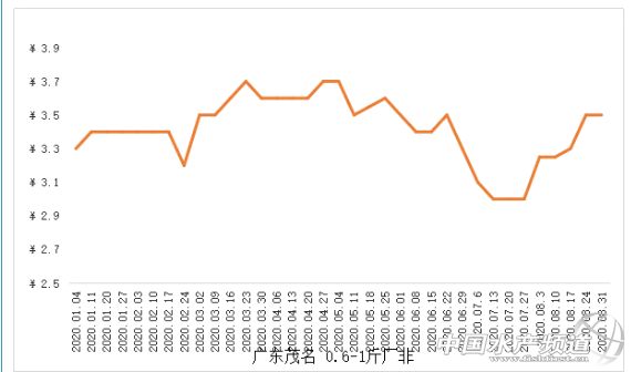 | 中國水產(chǎn)頻道原創(chuàng)報(bào)道, 存塘規(guī)格魚不多,養(yǎng)戶賣魚積極性也不高,行情穩(wěn)中小漲,但局部地區(qū)爛市賣不動(dòng) 文/ 水產(chǎn)前沿 葉豐齊 水產(chǎn)前沿專業(yè)為你推送羅非魚 最新價(jià)格行情及行業(yè)新聞、各類資訊。 同時(shí)歡迎行業(yè)人士踴躍爆料,請掃二維碼聯(lián)系 代表產(chǎn)區(qū)羅非魚行情走勢 整體行情綜述 本周羅非魚行情基本持平,局部地區(qū)價(jià)格繼續(xù)上調(diào)。海南地區(qū)各規(guī)格廠非價(jià)格再上調(diào)0.1元/斤,塘頭收購價(jià)上調(diào)0.1-0.15元/斤;珠三角地區(qū),珠海1.2斤上市場非價(jià)格與上周持平,新興1.5斤上規(guī)格市場非上調(diào)0.2元/斤,恩平市場非與廠非價(jià)格皆不變,肇慶各規(guī)格羅非價(jià)格依然維持,東莞1.2斤上規(guī)格市場非價(jià)格保持,外省車開價(jià)亦與上周持平;粵東地區(qū)惠州1.2-2斤規(guī)格羅非持平,揭陽和汕尾地區(qū)廠非和市場非價(jià)格皆不變;粵西地區(qū)湛江和茂名0.6-1斤規(guī)格、1-1.6斤規(guī)格廠非維持上周價(jià)格,1.3-1.5斤上規(guī)格市場非行情亦不變;廣西地區(qū)北海0.6斤規(guī)格廠非價(jià)格保持穩(wěn)定,1斤上廠非上調(diào)0.05-0.1元/斤,1.3斤上市場非上調(diào)0.2元/斤,南寧1.3斤上規(guī)格市場非、柳州1.3-2斤規(guī)格、欽州以及防城港1.3斤上市場非皆上調(diào)0.2元/斤;云南地區(qū)昆明和紅河1-2斤規(guī)格羅非價(jià)格皆上調(diào)0.05元/斤。 各產(chǎn)地行情分析 海南地區(qū):存塘規(guī)格魚減少,新批要到11月才上市,時(shí)下基本走廠,沒有出市場。0.6-1斤規(guī)格廠非收購價(jià)3元/斤,1斤上規(guī)格廠非4元/斤,環(huán)比上周皆上調(diào)0.1元/斤;現(xiàn)金收購價(jià)3.8-3.85元/斤,環(huán)比上周上調(diào)0.1-0.15元/斤。 珠三角地區(qū):市場較缺魚,存塘規(guī)格魚不多,養(yǎng)戶賣魚積極性也不高,行情穩(wěn)中小漲,但局部地區(qū)爛市賣不動(dòng)。珠海目前基本沒有賣廠非的,除非魚因?yàn)楦邷爻鰡栴},一般都養(yǎng)到1.2斤上規(guī)格出市場,4.3-4.5元/斤,保持上周價(jià)格;而5-9斤大羅非塘頭價(jià)8.5元/斤,同上周。東莞1.2-2斤以上規(guī)格水車走珠三角市場羅非塘頭價(jià)4.1元/斤,同上周價(jià)格;福建魚車抓4.25元/斤,亦與上周價(jià)格持平;另有外省車抓0.8斤上統(tǒng)貨3.9元/斤,同上周。恩平1.8-2斤規(guī)格市場非4.3-4.4元/斤,6兩上廠非2.9元/斤,1斤上3.9元/斤,皆維持上周價(jià)格;新興1.5斤上規(guī)格到手價(jià)4.3元/斤,環(huán)比上周上調(diào)0.2元/斤;肇慶1.3斤上市場非裝車價(jià)3.6-3.8元/斤,0.6-1斤規(guī)格廠非2.6-3.1元/斤,1-1.6斤規(guī)格3.55元/斤,1.6斤上3.3元/斤,皆與上周行情一致。 粵東地區(qū):市場需求比之前更大一些;葜1.2-2斤規(guī)格走本地市場羅非上午車4.1元/斤,下午車4.2元/斤,皆同上周價(jià)格。揭陽和汕尾規(guī)格魚較少,1斤以上規(guī)格廠非(走汕尾本地凍廠)塘頭價(jià)2.9元/斤,1-1.2斤上規(guī)格市場非3.6-3.7元/斤,皆與上周價(jià)格一致。 粵西地區(qū):湛江、茂名兩地缺少規(guī)格魚。1.3斤抓起、普遍抓1.7斤上規(guī)格市場非4.6-4.8元/斤,保持上周價(jià)格。加工廠方面0.6-1斤規(guī)格廠非3.2-3.5元/斤(5成3.5),1斤上規(guī)格塘頭現(xiàn)金收購價(jià)4.2元/斤,付款慢的4.25-4.3元/斤,皆與上周價(jià)格持平。 廣西地區(qū):沒有多少可以上市的大魚。北海0.6-1斤規(guī)格廠非3.3元/斤,加成后最高3.6元/斤,飼料魚3.7元/斤,皆同上周價(jià)格;1斤上規(guī)格廠非4.35元/斤,環(huán)比上周上調(diào)0.05-0.1元/斤,市場非1.3-2斤4.6-4.7元/斤,環(huán)比上周上調(diào)0.2元/斤。南寧1.3斤上規(guī)格市場非5.2元/斤,環(huán)比上周上調(diào)0.2元/斤。柳州1.5斤上規(guī)格羅非5.4-5.5,環(huán)比上周上調(diào)0.1-0.2元/斤。欽州、防城港1.3斤上規(guī)格拉網(wǎng)4.8元/斤,上調(diào)0.2元/斤。 云南地區(qū):新老魚交替,市場缺規(guī)格魚,羅非價(jià)格上調(diào)。昆明與紅河1.2斤上規(guī)格5.5-6元/斤,6兩到1斤規(guī)格燒烤羅非4.5-5元/斤,環(huán)比上周皆上調(diào)0.5元/斤;而飼料廠收魚加1000元/噸。 |