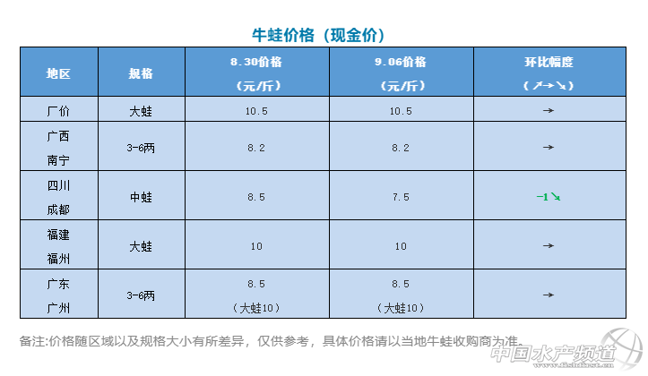 | 中國(guó)水產(chǎn)頻道原創(chuàng)報(bào)道, 牛蛙價(jià)格漲跌不定,黑斑蛙價(jià)格持穩(wěn) 文/ 水產(chǎn)前沿 陳曉慶 牛蛙行情 今日牛蛙主流廠家報(bào)價(jià)(廠價(jià)):4-8兩10.5元/斤,4-7兩/10.0元/斤,3-7兩/9.5元/斤,3-6兩9.0元/斤,3-5兩/8.0元/斤,2-5兩/7.5元/斤,2-4兩/7.0元/斤。以上價(jià)格僅供參考,不同地區(qū)價(jià)格有所差異。 進(jìn)入9月之后牛蛙行情一直漲漲跌跌,一天一個(gè)價(jià)格。從上周一開(kāi)始牛蛙價(jià)格觸底反彈,廠價(jià)最高漲到了12.5元/斤;周三又重新回落,一天跌價(jià)0.5-1元/斤,到了周六大蛙已經(jīng)跌破了9.5元/斤,而今日牛蛙價(jià)格又再次回漲了1元/斤。 總體來(lái)說(shuō),近期牛蛙價(jià)格是漲的少跌的多。進(jìn)入九月份學(xué)生開(kāi)學(xué),牛蛙餐飲端的消費(fèi)旺季結(jié)束,市場(chǎng)銷量有所下滑,使得剛有上漲苗頭的牛蛙價(jià)格也頂不住壓力重新回落。然而價(jià)格一旦跌落太多養(yǎng)殖戶便開(kāi)始惜售,收蛙商不得不提高價(jià)格來(lái)促進(jìn)養(yǎng)殖戶出蛙。目前國(guó)內(nèi)的蛙整體來(lái)說(shuō)規(guī)格還是偏小,除了廣東、福建、海南等部分地區(qū)已經(jīng)有4-7兩、4-8兩的大蛙之外,像廣西、江西等地都是以小蛙為主,只有少量達(dá)到3-6兩規(guī)格的能夠上市。大蛙相對(duì)來(lái)說(shuō)價(jià)格更高,蛙價(jià)跌落太多,養(yǎng)殖戶趕行情的熱情消退,如果不是因?yàn)椴『蛸Y金周轉(zhuǎn),養(yǎng)殖戶更愿意把蛙養(yǎng)大再賣。 開(kāi)學(xué)季牛蛙餐飲進(jìn)入淡季,隨著中秋、國(guó)慶小長(zhǎng)假的到來(lái),又將迎來(lái)一段消費(fèi)的小高峰。但另一方面,各地新蛙也在不斷上市補(bǔ)充市場(chǎng),澄海新蛙也將到來(lái),對(duì)后市的蛙價(jià)又增添了幾分不確定性。 黑斑蛙行情 目前黑斑蛙的價(jià)格仍然不是很理想,F(xiàn)階段正是黑斑蛙集中上市的時(shí)期,再加上市場(chǎng)并未完全打開(kāi),消費(fèi)受阻,黑斑蛙價(jià)格一時(shí)間難以上漲。對(duì)于中秋、國(guó)慶小長(zhǎng)假期間的行情,業(yè)內(nèi)人士表示將有望上漲,但幅度預(yù)計(jì)不會(huì)太大,真正蛙價(jià)漲到理想價(jià)位還得等到10月底11月之后。 一周要聞 好消息!湖南蛙類養(yǎng)殖戶能辦新證了 9月1日,湖南省農(nóng)業(yè)農(nóng)村廳辦公室下發(fā)《關(guān)于做好蛙類人工繁育許可證和經(jīng)營(yíng)利用許可證辦理工作的通知》。本次能辦理許可證的品種是黑斑蛙,棘胸蛙,棘腹蛙,中國(guó)林蛙、黑龍江林蛙等相關(guān)蛙類。而且在湖南省政府門戶網(wǎng)站、湖南政務(wù)服務(wù)網(wǎng)、以及湖南省農(nóng)業(yè)農(nóng)村廳官網(wǎng)等三個(gè)官方網(wǎng)站上就可以直接辦理,方便快捷。 經(jīng)歷了疫情和“禁養(yǎng)”風(fēng)波,我們養(yǎng)蛙業(yè)規(guī)范化、合理化勢(shì)在必行。養(yǎng)蛙業(yè)將迎來(lái)一個(gè)新的開(kāi)始。 2020中國(guó)餐飲加盟榜最新公布,牛蛙品類引領(lǐng)者蛙來(lái)噠實(shí)力入榜 中國(guó)餐飲加盟榜是中國(guó)餐飲領(lǐng)域內(nèi)最具權(quán)威的行業(yè)榜單之一。在近期的“CCFA”新消費(fèi)論壇--2020年中國(guó)連鎖餐飲峰會(huì)中,“2020年中國(guó)餐飲加盟榜TOP100”公布,蛙來(lái)噠不負(fù)眾望,成為牛蛙美食加盟品牌中唯一入選的加盟品牌。 面對(duì)突然的疫情襲擊,在整個(gè)餐飲行業(yè)暗淡的時(shí)候,蛙來(lái)噠堅(jiān)持自家牛蛙的品質(zhì)打造,靜待時(shí)機(jī)。目前,蛙來(lái)噠的線下門店已經(jīng)遍布全國(guó)200多家了,更令人驚喜的是,蛙來(lái)噠的加盟率高達(dá)90%,如此豐功偉績(jī)想不入圍“2020年中國(guó)餐飲加盟榜TOP100”都難。 作為餐飲加盟界的口碑之王,蛙來(lái)噠品牌聯(lián)合創(chuàng)始人羅清女士表示:作為牛蛙品類的開(kāi)創(chuàng)者和引領(lǐng)者,蛙來(lái)噠將在接下來(lái)的發(fā)展過(guò)程中,始終聚焦蛙類美食,持續(xù)發(fā)光發(fā)熱,持續(xù)助力餐飲行業(yè)加盟模式的持續(xù)健康發(fā)展。 |
