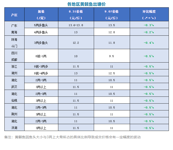 | 中國(guó)水產(chǎn)頻道原創(chuàng)報(bào)道, 文/圖 何氏水產(chǎn)、水產(chǎn)前沿 李靜 黃顙魚 1、本周廣東黃顙魚價(jià)格有所下滑,5兩多魚頭報(bào)價(jià)13.5元/斤,比上周下跌了0.3元/斤;4兩多魚頭報(bào)價(jià)12.8元/斤,比上周下跌了0.2元/斤;3兩多魚頭11.8元/斤,比上周下跌了0.4元/斤。新魚開始上市,且開塘價(jià)格便宜,中、小魚受新魚上市影響較大,價(jià)格后期還會(huì)有小幅下滑。5兩多魚頭的老魚短期內(nèi)以持穩(wěn)為主。 2、浙江湖州黃顙魚價(jià)格比上周也下跌了0.5元/斤,3兩多魚頭11元/斤,比上周下跌0.5元/斤;4兩多魚頭報(bào)價(jià)12.5元/斤,比上周也下跌了0.5元/斤。湖北各地黃顙魚價(jià)格,2-3兩多魚頭價(jià)格在10.5元/斤左右,比上周下跌0.5元/斤。3兩以上比上周也下跌了0.5元/斤,報(bào)價(jià)12.5元/斤。銷量跟上周也差不多。預(yù)測(cè)接下來價(jià)格還會(huì)有小幅下滑。 |