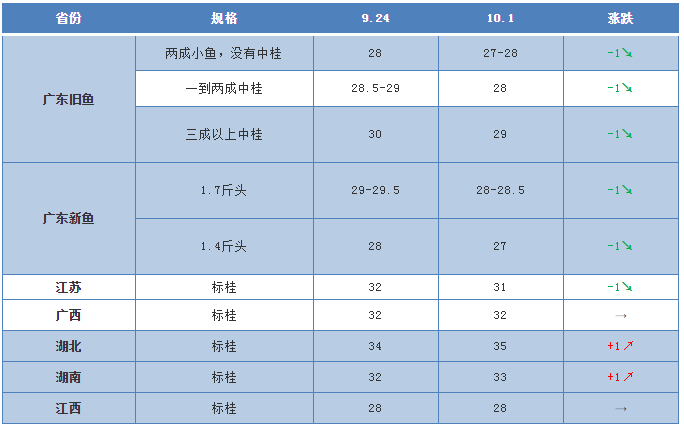 文 水產前沿 李靜 本周行情 中國水產頻道原創(chuàng)報道,10月1日是國慶長假第一天,據(jù)流通商反映,從9月30日開始,從南到北各高速公路出現(xiàn)大面積擁堵,而今天堵車最為嚴重,有些車輛9個小時還前進不到一百公里,導致廣東出發(fā)的活魚運輸車輛大部分被堵在路上,就算客戶下了單,也無法按時到達。此外,今年國慶節(jié)銷量沒有預期的那么好市,偏大魚今天已經開始爛市。 10月1日廣東新魚好規(guī)格的28元/斤左右,舊魚好規(guī)格的29元/斤,跟前兩天最高30元/斤相比已經明顯回落,中桂兩天跌3元/斤。就算有行情,也因為活魚車輛到處塞車拿不到貨。這兩天不少流通商被客戶催貨,也只好無奈回復:魚還在路上!此外,各地擁堵嚴重,魚車不能按時到達貨場,回頭車也不能準時趕回來拉魚。 江蘇標桂10月1日31元/斤,比前兩天價格也下跌了1元/斤,10月1日開始銷量下滑,偏大魚沒銷量,前兩天市場搶偏大魚,10月1日直接不要,流通商虧損嚴重。 此外,湖北、湖南鱖魚好市,各漲了1元/斤;廣西標桂和江西標桂價格穩(wěn)定。 各地區(qū)鱖魚塘頭價與上周對比: 備注:以上價格僅供參考,偏小與偏大價格會略有出入。 編號:gybj-2020-38 餌料魚:本周各地餌料魚價格整體穩(wěn)定,佛山、花都、江門等地分別上漲了0.3-0.4元/斤,由于目前餌料魚價格整體偏高,導致不少養(yǎng)殖戶不敢投放尾批鱖魚苗。 部分地區(qū)餌料魚塘頭價: |