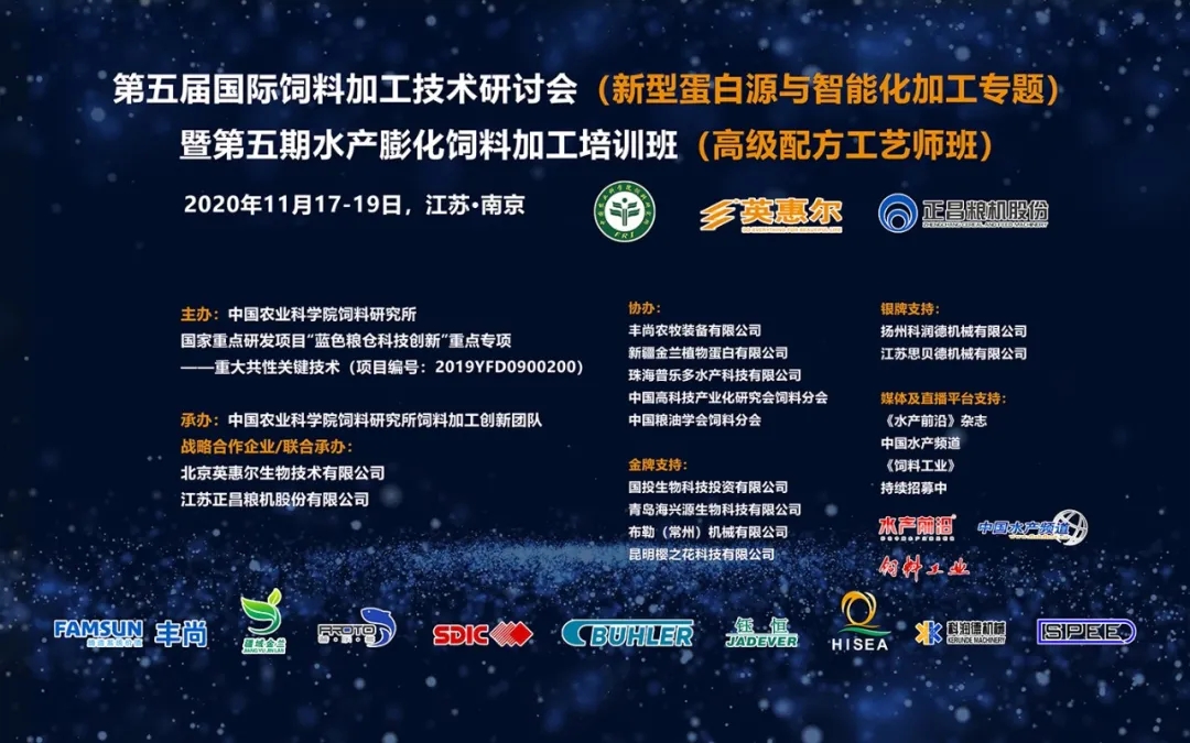 | 中國(guó)水產(chǎn)頻道報(bào)道, 第五屆國(guó)際飼料加工技術(shù)研討會(huì) (新型蛋白源與智能化加工專題) 暨第五期水產(chǎn)膨化飼料加工培訓(xùn)班 (高級(jí)配方工藝師班) 第一輪通知 2020年11月17-19日,江蘇·南京 主辦 中國(guó)農(nóng)業(yè)科學(xué)院飼料研究所 國(guó)家重點(diǎn)研發(fā)項(xiàng)目“藍(lán)色糧倉(cāng)科技創(chuàng)新”重點(diǎn)專項(xiàng)--重大共性關(guān)鍵技術(shù)(項(xiàng)目編號(hào):2019YFD0900200) 承辦 中國(guó)農(nóng)業(yè)科學(xué)院飼料研究所飼料加工創(chuàng)新團(tuán)隊(duì) 戰(zhàn)略合作企業(yè)/聯(lián)合承辦 北京英惠爾生物技術(shù)有限公司 江蘇正昌糧機(jī)股份有限公司 協(xié)辦 豐尚農(nóng)牧裝備有限公司 新疆金蘭植物蛋白有限公司 珠海普樂(lè)多水產(chǎn)科技有限公司 中國(guó)高科技產(chǎn)業(yè)化研究會(huì)飼料分會(huì) 中國(guó)糧油學(xué)會(huì)飼料分會(huì) 金牌支持 國(guó)投生物科技投資有限公司 青島海興源生物科技有限公司 布勒(常州)機(jī)械有限公司 昆明櫻之花科技有限公司 銀牌支持 揚(yáng)州科潤(rùn)德機(jī)械有限公司 江蘇思貝德機(jī)械有限公司 媒體及直播平臺(tái)支持 《水產(chǎn)前沿》雜志 《飼料工業(yè)》 持續(xù)招募中 各位學(xué)術(shù)界及企業(yè)界同仁: 魚粉替代問(wèn)題已經(jīng)成為全球水產(chǎn)飼料研究的核心熱點(diǎn)。同時(shí),大豆也成為我國(guó)飼料產(chǎn)業(yè)受制于人的“卡脖子”因素,飼料用糧無(wú)法占用更多耕地,新型原料亟待開(kāi)發(fā)。我國(guó)非糧蛋白種類豐富,但技術(shù)研發(fā)嚴(yán)重不足限制其在水產(chǎn)飼料中應(yīng)用。因此,開(kāi)發(fā)新型非糧蛋白是解決飼料蛋白源短缺、促進(jìn)水產(chǎn)養(yǎng)殖可持續(xù)發(fā)展、保障國(guó)家糧食安全的重要途徑。明確新型飼料資源加工特性是其進(jìn)入配方系統(tǒng),保證飼料加工質(zhì)量的前提。 然而,我國(guó)飼料工業(yè)發(fā)展的三大環(huán)節(jié)——原料生產(chǎn)、飼料機(jī)械裝備和飼料生產(chǎn)企業(yè)在技術(shù)研發(fā)應(yīng)用環(huán)節(jié)存在相互脫節(jié),難以協(xié)調(diào)一致發(fā)展的難題。我國(guó)飼料裝備的智能化與歐美發(fā)達(dá)國(guó)家相比,技術(shù)水平相差甚遠(yuǎn),特別是在原料多元性配方模式下的智能化生產(chǎn),難度很大。目前,絕大部分飼料生產(chǎn)仍為勞動(dòng)密集型,自動(dòng)化程度較低。特別在新冠病毒疫情事件視角下,勞動(dòng)密集型企業(yè)復(fù)工風(fēng)險(xiǎn)較大。此次疫情也將加速推動(dòng)我國(guó)飼料生產(chǎn)遠(yuǎn)程化控制和智能化裝備的需求和發(fā)展。為提升我國(guó)飼料加工質(zhì)量及效率,增進(jìn)國(guó)內(nèi)外飼料加工先進(jìn)技術(shù)和經(jīng)驗(yàn)的交流合作,中國(guó)農(nóng)業(yè)科學(xué)院飼料研究所飼料加工創(chuàng)新團(tuán)隊(duì)將于2020年11月17-19日召開(kāi)“第五屆國(guó)際飼料加工技術(shù)研討會(huì)(新型蛋白資源與智能化加工專題)暨第五期水產(chǎn)膨化飼料加工培訓(xùn)班(高級(jí)配方工藝師班)”。該會(huì)議已在北京(2016年)、揚(yáng)州(2017年)、天津(2018年)、珠海(2019)成功舉辦四屆,同時(shí)已開(kāi)辦四期水產(chǎn)膨化飼料加工技術(shù)基礎(chǔ)知識(shí)培訓(xùn)班,受到行業(yè)矚目!本次研討會(huì)將圍繞“精準(zhǔn)營(yíng)養(yǎng)和精細(xì)加工”的主題,邀請(qǐng)國(guó)內(nèi)外知名飼料加工與營(yíng)養(yǎng)領(lǐng)域理論和實(shí)踐專家,針對(duì)新型蛋白資源開(kāi)發(fā)與應(yīng)用,原料加工適應(yīng)特性、飼料加工生產(chǎn)大數(shù)據(jù)及智造技術(shù)最新進(jìn)展進(jìn)行交流與研討,促進(jìn)產(chǎn)業(yè)界和學(xué)術(shù)界的合作與互動(dòng)。同時(shí),培訓(xùn)班課程全面升級(jí),特別針對(duì)蛋白質(zhì)和淀粉原料加工適應(yīng)性,以及高難度產(chǎn)品,如低淀粉浮性膨化料,小龍蝦飼料的加工工藝進(jìn)行深度解析和現(xiàn)場(chǎng)交流。本次研討會(huì)設(shè)立飼料生產(chǎn)技術(shù)創(chuàng)新論壇(簡(jiǎn)稱“論壇”),邀請(qǐng)國(guó)內(nèi)外著名飼料生產(chǎn)、飼料裝備企業(yè)進(jìn)行創(chuàng)新產(chǎn)品與技術(shù)推介,并與知名學(xué)者就新型蛋白資源開(kāi)發(fā)應(yīng)用、企業(yè)生產(chǎn)技術(shù)創(chuàng)新過(guò)程中遇到的難題和熱點(diǎn)問(wèn)題展開(kāi)討論。我們力求飼料加工技術(shù)不斷發(fā)展創(chuàng)新,本次大會(huì)分別設(shè)立線下主會(huì)場(chǎng),并首次開(kāi)放線上全程直播。大會(huì)組委會(huì)熱忱歡迎您的參加,熱烈歡迎企業(yè)、事業(yè)單位提供贊助。 時(shí)間地點(diǎn) 研討會(huì): 時(shí)間:11月17-18日 地點(diǎn):南京國(guó)際博覽會(huì)議中心鐘山廳(三層) 培訓(xùn)班: 時(shí)間:11月19日 地點(diǎn):南京國(guó)際博覽會(huì)議中心302會(huì)議室 研討會(huì)演講內(nèi)容及演講嘉賓 (Symposium and forum program) 第一部分:研討會(huì)(11.17-18上午) 大會(huì)特邀嘉賓: 1.麥康森院士,中國(guó)海洋大學(xué)(Academician,Prof/Dr.Kangsen Mai,Ocean University of China) 報(bào)告題目:水產(chǎn)飼料的蛋白源問(wèn)題 2.Prof./Dr.MargarethØverland,N