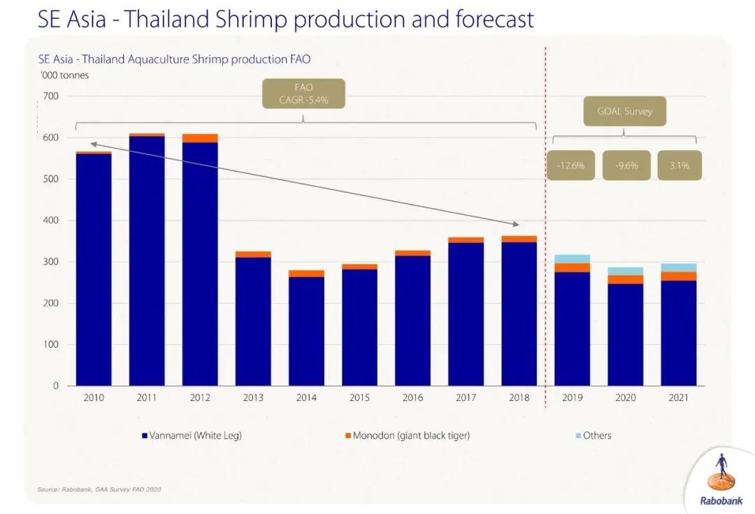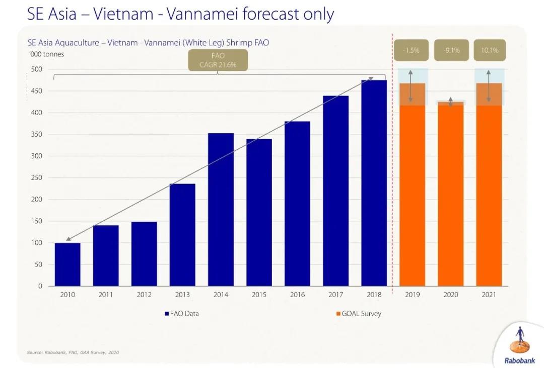 文/ 海鮮指南 (Seafood-guide)李帥 報(bào)告所引用數(shù)據(jù)來(lái)源于FAO,以及GAA與荷蘭銀行獨(dú)家調(diào)研預(yù)測(cè) 中國(guó)水產(chǎn)頻道原創(chuàng)報(bào)道,2020年10月6日-8日,由全球水產(chǎn)養(yǎng)殖聯(lián)盟(GAA)主辦的水產(chǎn)界盛會(huì)——全球水產(chǎn)領(lǐng)袖展望峰會(huì)(GOAL)在互聯(lián)網(wǎng)上拉開序幕。據(jù)GAA首席執(zhí)行官Wally Stevens介紹,本次大會(huì)吸引來(lái)自全球20多個(gè)國(guó)家的50位演講嘉賓,為4000多位報(bào)名觀眾分享了水產(chǎn)前沿技術(shù)、生產(chǎn)數(shù)據(jù)、行業(yè)可持續(xù)性、產(chǎn)業(yè)現(xiàn)狀分析等信息。 GAA首席執(zhí)行官 Wally Stevens 為期三天的峰會(huì),泰國(guó)正大CP,越南明富,日本三井物產(chǎn),美國(guó)沃爾瑪、嘉吉飼料,英國(guó)Tesco,京東等水產(chǎn)飼料、養(yǎng)殖、流通、電商巨頭悉數(shù)出席。更讓人矚目的是,來(lái)自中國(guó)的蝦料巨頭企業(yè)恒興集團(tuán)也重磅發(fā)聲,向世界展示中國(guó)對(duì)蝦養(yǎng)殖的輝煌成果。 本文整理了荷蘭銀行的分析師Gorjan Nikolik 分享的《全球蝦類水產(chǎn)養(yǎng)殖產(chǎn)量調(diào)查報(bào)告2020》,希望能為國(guó)內(nèi)白蝦從業(yè)者提供新思路。(GAA會(huì)員可通過(guò)GAA官網(wǎng)獲取完整報(bào)告及更多GOAL 2020峰會(huì)直播錄像) 掃描二維碼,獲取GAOL 2020峰會(huì)完整報(bào)告 厄瓜多爾白蝦產(chǎn)量領(lǐng)跑美洲!2020年或?qū)⒊霈F(xiàn)首次停滯! 厄瓜多爾白蝦歷年來(lái)總產(chǎn)量 2019年美洲最大的對(duì)蝦生產(chǎn)國(guó)毫無(wú)疑問(wèn)還是厄瓜多爾,從數(shù)據(jù)上來(lái)看,2010年-2018年,厄瓜多爾已經(jīng)連續(xù)9年保持增產(chǎn),復(fù)合增長(zhǎng)率達(dá)到了驚人的11%,2019更是達(dá)到了驚人的19%的增長(zhǎng)率,這個(gè)數(shù)據(jù)讓全球蝦產(chǎn)業(yè)人士都感到震驚和佩服。 但令人意外的是,厄瓜多爾白蝦2020年預(yù)計(jì)僅增產(chǎn)1.4%左右,2021年為1.9%,如此反常的現(xiàn)象又讓許多人不解。在2020年上半年,厄瓜多爾白蝦產(chǎn)業(yè)養(yǎng)殖、出口表現(xiàn)得十分強(qiáng)勁,但從數(shù)據(jù)來(lái)看,上半年的增長(zhǎng)不足以補(bǔ)償下半年的頹勢(shì),更有資深業(yè)內(nèi)人士認(rèn)為,厄瓜多爾2020年白蝦總產(chǎn)量已經(jīng)同比下降。 墨西哥減產(chǎn)10%!巴西增長(zhǎng)超30%,或?qū)⒊蔀橄乱粋(gè)“厄瓜多爾”? 展望美洲對(duì)蝦產(chǎn)業(yè)未來(lái)的發(fā)展機(jī)會(huì),墨西哥也是重要的對(duì)蝦生產(chǎn)國(guó)。在2012年和2013年,受席卷全球的EMS蝦病影響,但之后產(chǎn)業(yè)復(fù)蘇迅速,當(dāng)?shù)匚r農(nóng)有更豐富的經(jīng)驗(yàn)去預(yù)防治療蝦病。數(shù)據(jù)顯示,2020年對(duì)于墨西哥對(duì)蝦養(yǎng)殖業(yè)而言,也是十分艱難的一年,總產(chǎn)量或?qū)⑾陆?0%,即使2021年有一些復(fù)蘇,也無(wú)法達(dá)到2019年同期水平(160000噸)。 美洲最后一個(gè)對(duì)蝦生產(chǎn)大國(guó)是巴西,過(guò)往十多年來(lái),巴西一直被認(rèn)為是最具潛力的國(guó)家,但總有一個(gè)又一個(gè)的問(wèn)題阻礙了巴西對(duì)蝦養(yǎng)殖業(yè)的發(fā)展。數(shù)據(jù)顯示,過(guò)去十年內(nèi),巴西對(duì)蝦養(yǎng)殖總產(chǎn)量呈現(xiàn)下降趨勢(shì),但2019年,巴西對(duì)蝦養(yǎng)殖產(chǎn)量的增速令人吃驚,增長(zhǎng)了33.1%,并且我們預(yù)測(cè),在2020年巴西對(duì)蝦產(chǎn)量還會(huì)保持9.1%的增速,在2021年,更是能達(dá)到15.6%。 參與我們調(diào)查的白蝦相關(guān)產(chǎn)業(yè)人士認(rèn)為,巴西的白蝦擁有更好的基因性狀,更優(yōu)質(zhì)的飼料,已經(jīng)吸引了眾多投資方進(jìn)入這塊熱土,資本將加速推進(jìn)巴西養(yǎng)蝦業(yè)的增長(zhǎng),巴西必然是值得全球關(guān)注的對(duì)蝦產(chǎn)區(qū)。巴西也是一個(gè)全球農(nóng)業(yè)大國(guó),如果他們能繼續(xù)保持這樣的高速增長(zhǎng),它將成為又一個(gè)強(qiáng)有力的白蝦主產(chǎn)國(guó),成為下一個(gè)“厄瓜多爾”也不是沒有可能。 在拉丁美洲,還有一些其他的白蝦生產(chǎn)國(guó),例如秘魯、洪都拉斯,在過(guò)去十年里白蝦總產(chǎn)量的增長(zhǎng)讓人贊嘆,特別是秘魯一直以10%的速度穩(wěn)定增長(zhǎng),增長(zhǎng)潛力無(wú)比巨大。 美洲各個(gè)國(guó)家對(duì)蝦歷年來(lái)總產(chǎn)量 從美洲對(duì)蝦總產(chǎn)量的圖片中,我們看到的是一個(gè)輝煌的十年,相比2010年增長(zhǎng)了20%,僅2019年增速就超過(guò)14%,這其中最重要的功勞是由厄瓜多爾貢獻(xiàn)的,它占據(jù)了美洲60%以上白蝦產(chǎn)量,厄瓜多爾第一的地位實(shí)至名歸。在2020年,美洲對(duì)蝦總產(chǎn)量出現(xiàn)停滯甚至下滑,最主要的原因還是蝦價(jià)低迷,但我們預(yù)估在2021年蝦價(jià)將出現(xiàn)復(fù)蘇。 亞洲:印度對(duì)蝦產(chǎn)量暴跌26%!中國(guó)也暴跌15%?! 印度對(duì)蝦歷年來(lái)總產(chǎn)量 中國(guó)和印度,是全球白蝦業(yè)的另外兩個(gè)大玩家,印度對(duì)蝦的年復(fù)合增長(zhǎng)率甚至超過(guò)了20%,是歷史上全球蝦產(chǎn)量增長(zhǎng)速度最快的國(guó)家之一。在2019年,印度對(duì)蝦產(chǎn)量再次飛躍式增長(zhǎng)(17.6%),但在2020年,印度對(duì)蝦產(chǎn)業(yè)爆發(fā)