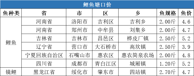 來源:通威農(nóng)牧 ,作者張梅 中國水產(chǎn)頻道報道,數(shù)據(jù)分析:本周全國鯉魚塘口均價4.65元/斤,同比下跌6.25%,環(huán)比上漲1.09%。 華北地區(qū):遼寧地區(qū)60-70%養(yǎng)殖戶養(yǎng)殖越冬魚,預(yù)計11月20日封冰,近期出魚較多,價格下跌0.1元/斤。黑龍江地區(qū)鯉魚價格回調(diào)0.1元/斤。吉林地區(qū)養(yǎng)殖戶出魚較少,價格穩(wěn)定在5.2元/斤。河南地區(qū)鯉魚存塘達6成,近期消費減少,價格維持在4.7元/斤。 華西地區(qū):寧夏地區(qū)鯉魚存塘達6成,套養(yǎng)花白鰱鯉魚較多,價格達4.8元/斤。 |