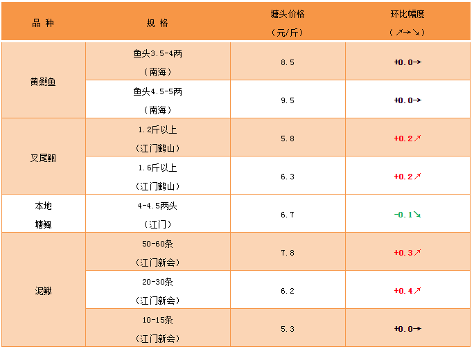 文/ 水產(chǎn)前沿 何鴻浩 中國水產(chǎn)頻道原創(chuàng)報(bào)道,南海黃顙魚:本周情況與上周情況相同,目前新魚7寸篩上,4兩多魚頭,發(fā)價(jià)9.5-9.8元/斤;舊魚價(jià)格約11.5元/斤。 叉尾鮰:因外省出魚量減少,魚車開始來廣東抓魚,故價(jià)格開始上漲 【關(guān)鍵字】:黃顙魚 叉尾鮰價(jià)格 水產(chǎn)養(yǎng)殖 |