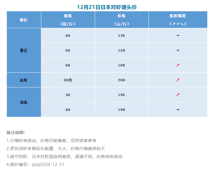 | 中國水產(chǎn)頻道獨家報道, 日本對蝦、斑節(jié)對蝦、羅氏沼蝦全線上漲!但貨源稀缺、走量漸緩 文/水產(chǎn)前沿何鴻浩 一周要聞 1、白蝦部分蝦少價高 近期天氣持續(xù)轉(zhuǎn)冷,白水塘出一塘少一塘,棚蝦選擇加溫待價。當前白蝦正處于青黃不接的狀態(tài),市場供不應求,大部分業(yè)者看好今冬蝦價,預計元旦前蝦價將保持穩(wěn)中帶漲或高位企穩(wěn)的良好局面。 2、羅氏沼蝦繼續(xù)上漲 本周羅氏沼蝦繼續(xù)上漲,但貨源是個難題。珠三角天氣轉(zhuǎn)冷,除卻有溫棚的池塘還有蝦,僅剩下一些水深極深的白水塘還頂?shù)米。廣東業(yè)者表示,羅蝦在本地銷量雖然不大,但有空運和長途車作為補充,但冬至訂單還是比往常稍多一些。 3、斑節(jié)對蝦市場缺貨 多地斑節(jié)對蝦售罄,市場進入缺貨狀態(tài)。福建業(yè)者表示,市場上已經(jīng)沒有斑節(jié)蝦了,甚至連白蝦都快頂不住了。今年本地有人選擇冬棚養(yǎng)斑節(jié),但人數(shù)很少,不足一成。 4、日本對蝦高位維穩(wěn) 本周日本對蝦維持穩(wěn)定,略微有所上漲,但漲幅明顯不及上兩周。環(huán)渤海業(yè)者表示,價格沒有大變化,但市場走量明顯慢了許多,這幾天估摸才走了一萬斤左右。 |