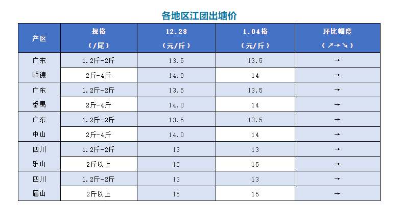 | 中國水產(chǎn)頻道原創(chuàng)報(bào)道, 文/圖 何氏水產(chǎn)、鱖鱸前沿 江團(tuán) 本周廣東江團(tuán)價(jià)格穩(wěn)定,1.2-2斤的報(bào)價(jià)13.5元/斤,跟上周一樣,2-4斤的報(bào)價(jià)14元/斤,保持不變。節(jié)后銷量有所減少,但存塘量也在減少,特別是大規(guī)格的魚。預(yù)計(jì)接下來價(jià)格或?qū)⑦會有上漲的機(jī)會。 四川江團(tuán)本周價(jià)格,1.2-2斤報(bào)價(jià)13元/斤,保持穩(wěn)定;2斤以上報(bào)價(jià)15元/斤,跟上周一樣。節(jié)后銷量減少了。預(yù)計(jì)接下來價(jià)格或?qū)⒎(wěn)定一段時(shí)間。 |