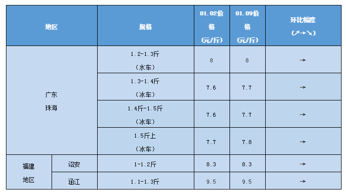 文/ 水產(chǎn)前沿 陳曉慶 感謝進(jìn)才水產(chǎn)供圖 一周行情分析 中國水產(chǎn)頻道原創(chuàng)報(bào)道,珠海海鱸:本周珠海海鱸水車、冰車價格繼續(xù)保持穩(wěn)定。打冰1.2-1.5斤規(guī)格報(bào)價7.6元/斤;打冰1.5斤以上規(guī)格7.7元/斤;水車1.2-1.3斤規(guī)格報(bào)價8元/斤;整體價格與上周同期持平。 目前趕頭批的養(yǎng)殖戶已經(jīng)投完苗,出魚積極性較低。但由于存塘量大,以及受北方疫情的影響,后市價格預(yù)計(jì)還會有所下跌。 當(dāng)前珠海海鱸投苗量在1.5億-2億尾,苗價繼續(xù)高漲,4公分苗大概在5毛左右。由于今年的行情養(yǎng)殖戶普遍不賺錢,加上苗價的高漲,養(yǎng)殖戶在猶豫是否繼續(xù)投苗。后市苗價預(yù)計(jì)還將繼續(xù)上漲,業(yè)內(nèi)人士建議養(yǎng)殖戶盡早投苗,或是轉(zhuǎn)養(yǎng)其他品種。 寒潮再次來襲,業(yè)內(nèi)人士建議養(yǎng)殖戶降溫前提前做好消毒的工作,在寒潮來臨時增強(qiáng)體質(zhì),伴服一些多維以及高檔的苗料,升溫之后病原菌繁殖速度較快,需再次進(jìn)行消毒,并補(bǔ)充有益菌。 福建海鱸:福建鱸魚每年的投苗時間集中在11月到12月份,目前已經(jīng)基本結(jié)束,1、2月份有少部分養(yǎng)殖場仍會繼續(xù)投苗。本周福建詔安海鱸報(bào)價8.3元/斤,涵江海鱸報(bào)價9.5元/斤,成魚價格以維穩(wěn)為主。 價格走勢 01月09日塘頭報(bào)價 說明:上述價格及行情分析僅供參考,市場有風(fēng)險,入市需謹(jǐn)慎 編號:hlbj2021-01-09 【關(guān)鍵字】:海鱸 海鱸價格 水產(chǎn)養(yǎng)殖 |