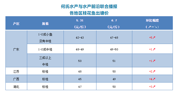 | 中國水產(chǎn)頻道原創(chuàng)報(bào)道, 文/圖 何氏水產(chǎn)、水產(chǎn)前沿 李靜 桂花魚 本周廣東鱖魚塘頭報(bào)價(jià)1-2成小魚沒有中桂開塘47-48元/斤,比上周上漲5元/斤;1-2成中桂開塘價(jià)49-50元/斤,比上周上漲1元/斤;三成以上中桂51元/斤,比上周也漲了1元/斤。近期廣東疫情突發(fā)形勢(shì)嚴(yán)峻,但并未對(duì)鱖魚造成太大的影響,最主要的原因是目前價(jià)格太高,流涌商不敢訂太多的魚在手上。還有一個(gè)原因是養(yǎng)戶惜售,除非是病魚養(yǎng)戶才有意愿出魚,導(dǎo)致市場(chǎng)上缺魚故而漲價(jià)。也有部分流通商看好后市行情,偏大規(guī)格的好魚最高訂魚52-53元/斤,為10年來同期的最高。預(yù)計(jì)接下來價(jià)格或許還會(huì)上漲的可能,有鱖魚的養(yǎng)殖戶又要暴富了。 廣西產(chǎn)區(qū)標(biāo)桂價(jià)格比上周上漲4元/斤,報(bào)價(jià)49元/斤;湖北產(chǎn)區(qū)標(biāo)桂價(jià)格比上周上漲了3元/斤,報(bào)價(jià)50元/斤;江蘇地區(qū)標(biāo)桂價(jià)格比上周也上漲了2元/斤,報(bào)價(jià)50元/斤,各地鱖魚存塘都已經(jīng)不多,價(jià)格或?qū)⑦會(huì)有上漲的機(jī)會(huì)。 |