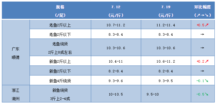 文/圖 何氏水產(chǎn)、水產(chǎn)前沿 黃家茵 生魚 水產(chǎn)前沿網(wǎng)原創(chuàng)報道,本周廣東生魚老魚2斤以上11.2-11.4元/斤,比上周上漲了0.5元/斤;2斤以下報價8.3-8.4元/斤,跟上周一樣;老魚統(tǒng)貨2斤上8成左右報10.3-10.6元/斤,保持不變。新魚4斤統(tǒng)貨9.3-9.5元/斤,比上周稍微下跌了0.1元/斤;新魚2斤上報價10.6-11元/斤,比上周上漲了0.2元/斤; 2斤以下報價8.2-8.4元/斤,跟上周一樣。每塘魚的最終成交價格都是根據(jù)魚頭大小以及2斤以上成數(shù)來決定的。廣東生魚上周的市場行情主要是大魚銷量好,價格有小幅的上漲,銷量比之前多。小魚價格比較穩(wěn)定,市場需求量比較穩(wěn)定。接下來大魚還會保持高位運行,小魚價格暫時穩(wěn)定。 各地區(qū)生魚出塘價 備注:生魚因魚頭大小導(dǎo)致成交價格會有一定幅度的波動 |