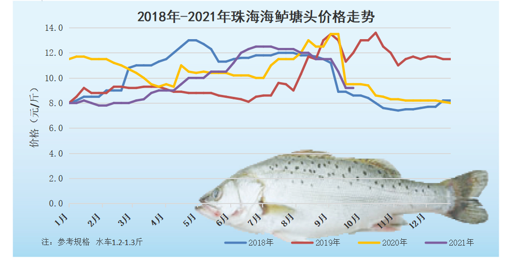 文/ 水產(chǎn)前沿 陳曉慶 水產(chǎn)前沿網(wǎng)原創(chuàng)報(bào)道,本周珠海海鱸新魚1.1-1.2斤規(guī)格9.0元/斤,1.2-1.3斤規(guī)格9.2元/斤,1.3-1.4斤規(guī)格9.4元,1.4斤以上規(guī)格9.8元/斤,價(jià)格穩(wěn)定。 舊魚方面,冰車1.5-2.0斤規(guī)格報(bào)價(jià)11.6-11.9元/斤,冰車2斤以上規(guī)格報(bào)價(jià)12-13元/斤,相比上周上調(diào)了0.1元/斤。 距離國(guó)慶還有不到一周時(shí)間,新魚價(jià)格基本維持在9-9.5元/斤。現(xiàn)在新魚集中上市,水車冰車價(jià)格相差并不大,冰車只便宜2-3毛/斤左右。目前養(yǎng)殖戶出魚積極性也比較高,有幾塘新魚都催著魚中去收。流通方面,水車走量變化并不大,比較穩(wěn)定,國(guó)慶期間才會(huì)有所增加;而冰車現(xiàn)在正處于節(jié)前備貨期,走量大幅度提升,但由于市場(chǎng)上新魚存塘充足,價(jià)格一時(shí)間也上不去。 今年新魚成本普遍偏高,現(xiàn)在9塊多的賣價(jià)對(duì)于養(yǎng)殖戶來說利潤(rùn)空間也并不大,后面氣溫逐漸回落,病害減少,料比也會(huì)有所降低,所以也有部分已經(jīng)達(dá)到出魚規(guī)格的養(yǎng)殖戶計(jì)劃推遲出魚時(shí)間。 9月25日塘頭報(bào)價(jià)