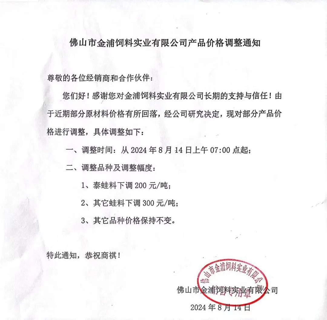 | 水產(chǎn)前沿網(wǎng)原創(chuàng)報(bào)道,昨天,魚粉跌價(jià)200元/噸,今天又跌400元/噸,至此,超級(jí)蒸汽魚粉價(jià)格來到了14900-15000元/噸。預(yù)計(jì)到港口魚粉庫存將繼續(xù)增加,后市還將繼續(xù)跌。 豆粕現(xiàn)貨價(jià)格跌破了2900元/噸大關(guān),來到了,據(jù)了解,今年美國大豆單產(chǎn)、產(chǎn)量、期末庫存均大幅上調(diào),目前到港大吳問數(shù)量較多,豆粕供應(yīng)充足且買家拿貨謹(jǐn)慎,庫存達(dá)到150萬噸的歷史高位,后市繼續(xù)承壓下跌。 在原料大幅下跌的態(tài)勢下,一大波飼料廠終于下調(diào)了水產(chǎn)料價(jià)格,主要是蛙料,包括牛蛙、泰蛙和其他蛙料,還有個(gè)別料企下調(diào)生魚料、塘虱料。具體如下: 繼8月13日漳州市鴻益飼料有限公司下調(diào)生魚料、牛蛙料300元/噸后,隨后,一大波料企下調(diào)蛙料價(jià)格,有南寧通威、佛山金浦、廣東恒源、廣東科綠、東山聯(lián)泰、福州詠蛙、漳州海新、汕頭無邊等飼料廠也發(fā)布飼料調(diào)價(jià)通知,8月13和14日(今天)降價(jià)蛙料(牛蛙料、泰蛙料)200-300元/噸、塘虱料150元/噸。 南寧通威生物科技有限公司降價(jià)通知 佛山市金浦飼料實(shí)業(yè)有限公司降價(jià)通知 福建詠蛙生特科技有限公司降價(jià)通知 東山縣聯(lián)泰飼料有限公司降價(jià)通知 廣東恒源飼料實(shí)業(yè)有限公司降價(jià)通知 廣東科綠飼料有限公司降價(jià)通知 漳州市海新水產(chǎn)飼料有限公司降價(jià)通知 汕頭市無邊農(nóng)業(yè)科技有限公司降價(jià)通知 8月13日漳州市鴻益飼料有限公司降價(jià) 8月1日天門通威生物科技有限公司降價(jià) 7月20日德陽大川農(nóng)牧科技有限公司降價(jià) 淡水魚料降價(jià)75-160元/噸 2024年8月14日國內(nèi)飼料原料行情匯總 另外,除了水產(chǎn)料外,最近禽料也在降價(jià),降價(jià)的料企有新希望、傲農(nóng)、旺海、德陽、金浦等。 預(yù)計(jì)后續(xù)還將有更多的料企下調(diào)水產(chǎn)料價(jià),水產(chǎn)前沿將繼續(xù)觀察及跟進(jìn)。 |