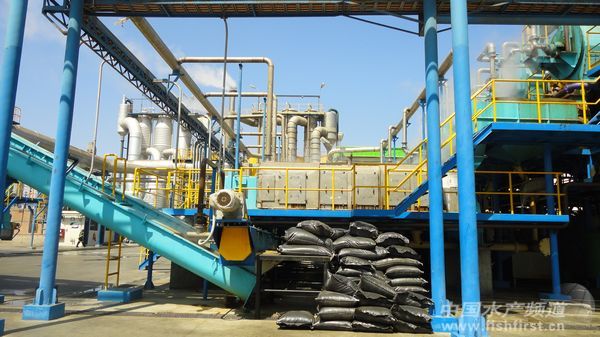 2、秘魯魚粉生產(chǎn)加工自動化程度高。從船上原料魚卸貨進廠到生產(chǎn)加工魚粉都是自動化完成,全程不落地。加工工藝一般為蒸煮、壓榨、烘干、冷卻、粉碎、包裝,工藝圖會展示在墻上。