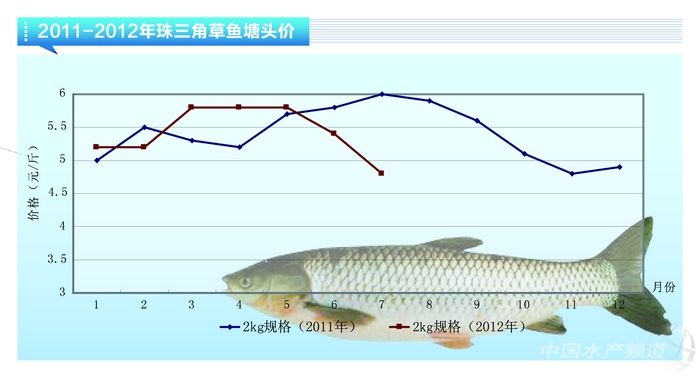 7月份,珠三角地區(qū)2-5斤規(guī)格草魚塘頭價(jià)4.8元/斤左右;5斤以上規(guī)格6.5元/斤左右。