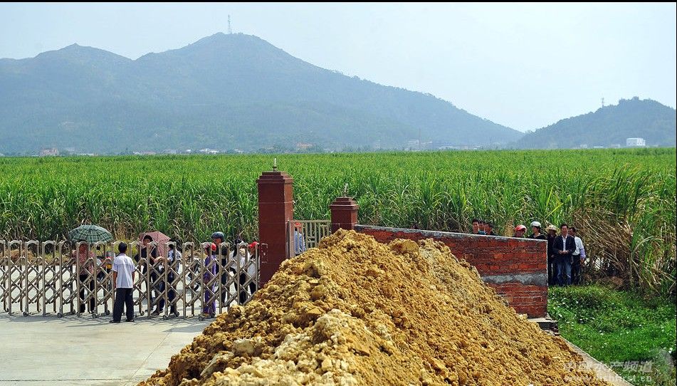 工廠內(nèi)仍堆放著大量用以提煉的泥土。與工廠僅一溪之隔的甘蔗林,已經(jīng)大片枯黃。