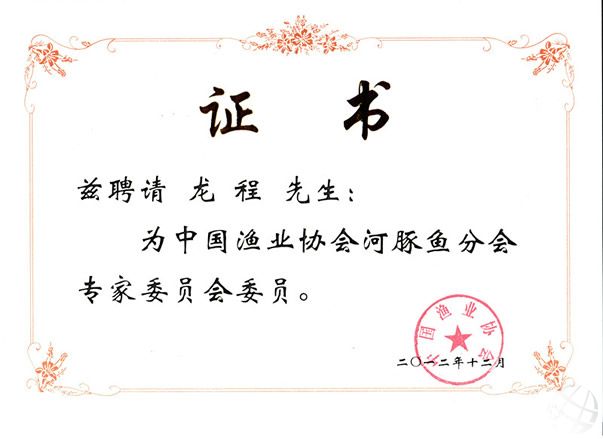 龍程教授當(dāng)選中國漁業(yè)協(xié)會河豚魚分會專家委員會委員