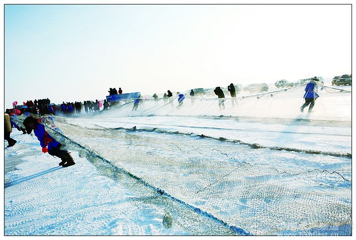 呼倫湖冬季捕漁的產(chǎn)量要占到全年產(chǎn)量的80%以上,被譽(yù)為“中國的愛斯基摩人”。 呼倫貝爾的呼倫湖,又名達(dá)賚湖,意思是“海一樣的湖”,面積2339平方公里,有兩個香港那么大,是中國第五大淡水湖,北方最大的湖。有人說冬天的呼倫湖是中國最大的一塊冰,這個比喻很形象。位于祖國東北與俄羅俄相鄰的達(dá)賚湖,從每年的十一月開始冰凍,一直到翌年的五月才開始融化,冰的厚度將近一米,近兩千多平方公里的一塊大冰實(shí)在夠大,這片中國最大的冰面上又演繹了怎樣的冬之故事呢? 不要以為冰凍三尺的呼倫湖就平靜了,在這塊巨冰之下卻有著不盡的寶藏。呼倫湖已經(jīng)有近一個世紀(jì)的漁業(yè)生產(chǎn)史,冰凍的湖下藏有鯉魚、鯽魚、油餐鰷、蒙古紅鲌、鯰魚、秀麗白蝦等30余種魚類。 為了保護(hù)資源,呼倫湖夏天是禁止捕魚的,每年自4月開始直到11月,呼倫湖都是處在“封湖休漁”期,冬季只有冰層達(dá)到45公分左右,并且經(jīng)過驗(yàn)冰人員檢測合格后,才可以開始冬捕。呼倫湖冬季捕漁的產(chǎn)量要占到全年產(chǎn)量的80%以上,被譽(yù)為“中國的愛斯基摩人”的捕魚者們,延用已經(jīng)有著近百年歷史的傳統(tǒng)的冰下捕魚的方式進(jìn)行冰上捕漁,近年,冰上捕漁這一原始的捕撈方式已成為呼倫貝爾冬季旅游的一個看點(diǎn)。 每年冰捕開始時有隆重的祭典儀式,現(xiàn)在已經(jīng)演繹為內(nèi)蒙古滿洲里的冰捕節(jié)了。只見戴著狗皮帽子、束腰棉襖、腳上蹬著防水鞋的漁工先是跪拜祭天祭地,然后就帶著冰上捕漁的“家伙什”坐著大膠輪車浩浩蕩蕩地在中國最大的冰面上捕撈冰下的寶藏了。經(jīng)過下網(wǎng)——給網(wǎng)——走桿——鉆冰幾道捕撈準(zhǔn)備,最為攝人心魄的一幕便是破冰捕魚,只見長龍式的大網(wǎng)由拖拉機(jī)牽引著從冰口徐徐拉出的時候,一條條還在冬眠的魚在睡夢中便被驚醒,在大網(wǎng)里撲楞著、跳躍著,引起人們一陣陣的驚呼。 遺憾的是我參加的冰捕見到的魚并不是很大,與我想象的壯觀場面有些差距,這讓我有些沮喪,后來一打聽才知道這網(wǎng)魚是呼倫湖特有的小白魚,它是長不太大的。呼倫湖的小白魚也叫“白條”,最大的就可以長到二、三兩,如果長到最大的時間不打撈就死了,用小白魚做的罐頭是達(dá)萊湖的特產(chǎn)。但讓我激動的是漁工們用“抄撈子”將魚撈至冰上,再用板鍬將魚揚(yáng)灑在冰面上以防凍成坨的場景。此時在金色的陽光下,銀魚漫天飛舞著像是跳躍著的金魚,陽光魚影映著漁工們的笑臉,那種感覺就是農(nóng)民享受著豐收后的喜悅。捕漁節(jié)這天只是呼倫湖冬季剛剛拉開冰上捕漁的大幕。漁工告訴我:那一網(wǎng)打上來幾十噸大魚的時候太多了,以后有機(jī)會你再來吧,一定讓你大飽眼福的! 圖片說明: 冰捕節(jié)開幕式 冰捕祭典儀式 臨上冰前喝上一大碗酒 捕撈隊(duì)伍出發(fā)了 起網(wǎng),激動人心的時刻到了 開鑿