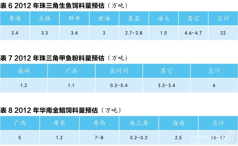 2012年,飼料行業(yè)面臨的最大問題是原料價格走勢的不穩(wěn)定性。包括一些大飼料企業(yè)在內(nèi),2012年初時對魚粉等原料的后市也持看空心理。隨著低價原料庫存的消耗和生產(chǎn)原材料價格的上升,飼料行業(yè)面臨的成本壓力逐漸增大,部分沒有采購優(yōu)勢的企業(yè)出現(xiàn)虧損的局面。 與成本壓力攀升相對的是,華南整個水產(chǎn)養(yǎng)殖市場商品魚行情普遍呈下滑趨勢,一方面給飼料企業(yè)漲價很大的心理壓力,另一方面也迫使一些養(yǎng)殖戶減少了飼料的投喂量,以降低養(yǎng)殖成本。由于部分養(yǎng)殖戶間斷性投料,飼料效果并不能如實反映,一些欲意在2012年打出公司品質(zhì)品牌的企業(yè)未能取得預(yù)期的效果。與2011年相比,2012年的料比普遍偏高。 此外,新的《飼料和飼料添加劑管理條例》于2012年5月開始正式實施,以及近期農(nóng)業(yè)部公布《飼料生產(chǎn)企業(yè)許可條件》和《混合型飼料添加劑生產(chǎn)企業(yè)許可條件》,對飼料及飼料添加劑企業(yè)又進(jìn)一步提出了生產(chǎn)能力方面的要求,提高行業(yè)門檻,加速了整個飼料行業(yè)整合。 回顧2012年的同時,本刊通過與各養(yǎng)殖品種或主要養(yǎng)殖區(qū)域市場的主流飼料企業(yè)交流,對華南主要養(yǎng)殖品種2012年的飼料市場銷量做了大體統(tǒng)計,以供參考。 羅非魚料