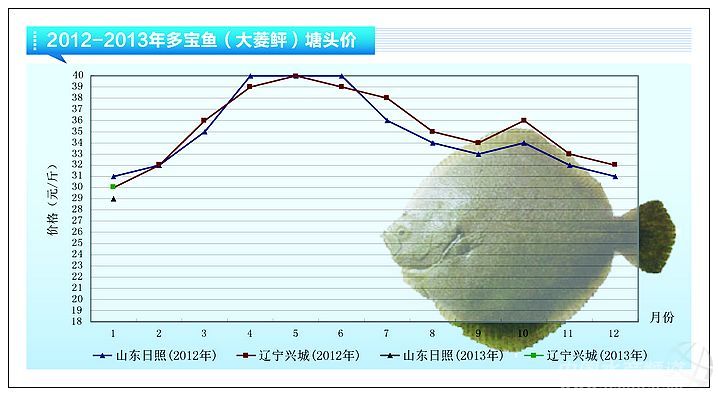 2013年元旦結(jié)束以后,大菱鲆魚(yú)價(jià)恢復(fù)到2012年12月中期的水平,目前,山東地區(qū)標(biāo)魚(yú)的塘頭價(jià)格為29元/斤,遼寧地區(qū)為30元/斤。 中國(guó)水產(chǎn)頻道獨(dú)家報(bào)道,轉(zhuǎn)載請(qǐng)說(shuō)明出處《水產(chǎn)前沿》雜志 www.szsfz.cn ,違者追究法律責(zé)任, 謝謝合作。