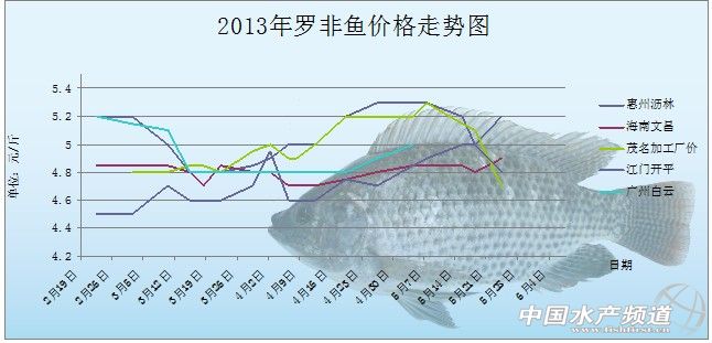 中國水產(chǎn)頻道獨家報道,據(jù)海大集團華南魚料部提供資料顯示5月18-24日羅非魚價格情況如下: