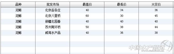 | 中國水產(chǎn)頻道獨家報道,6月24日全國主要批發(fā)市場泥鰍價格行情如下: