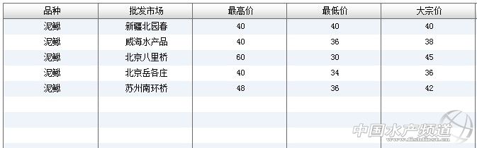 中國(guó)水產(chǎn)頻道獨(dú)家報(bào)道,7月4日全國(guó)主要批發(fā)市場(chǎng)泥鰍價(jià)格行情如下: