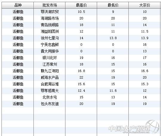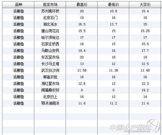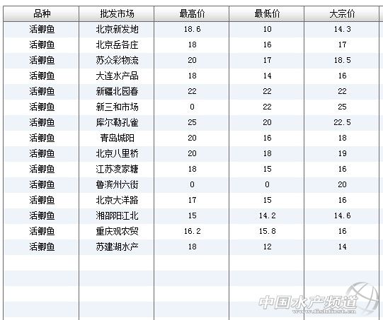 (中國水產(chǎn)頻道水產(chǎn)價(jià)格信息共享Q群:245296163,歡迎提供各種水產(chǎn)品一線價(jià)格信息。