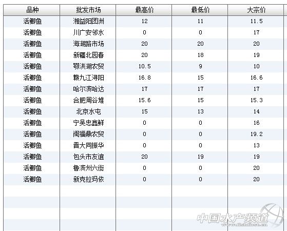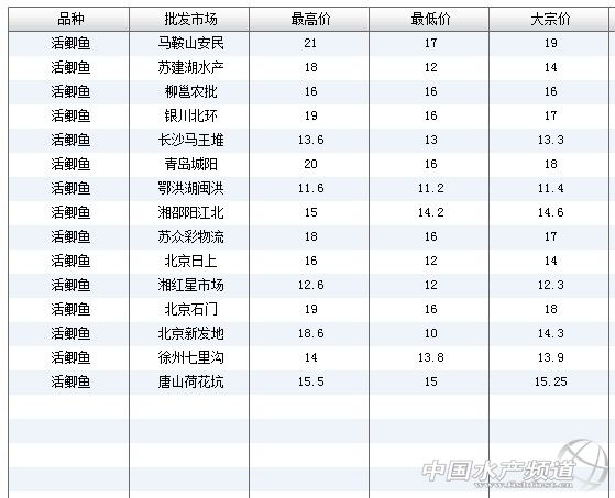 (中國(guó)水產(chǎn)頻道水產(chǎn)價(jià)格信息共享Q群:245296163,歡迎提供各種水產(chǎn)品一線價(jià)格信息。
