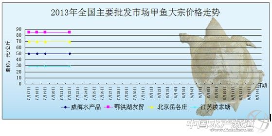 中國(guó)水產(chǎn)頻道獨(dú)家報(bào)道,7月22日全國(guó)主要批發(fā)市場(chǎng)甲魚價(jià)格行情如下: (中國(guó)水產(chǎn)頻道水產(chǎn)價(jià)格信息共享Q群:245296163,歡迎提供各種水產(chǎn)品一線價(jià)格信息。 【關(guān)鍵字】:甲魚 價(jià)格行情 批發(fā)市場(chǎng) 中國(guó)水產(chǎn)頻道(www.szsfz.cn)獨(dú)家報(bào)道,轉(zhuǎn)載請(qǐng)說(shuō)明出處,違者追究法律責(zé)任, 謝謝合作。 |