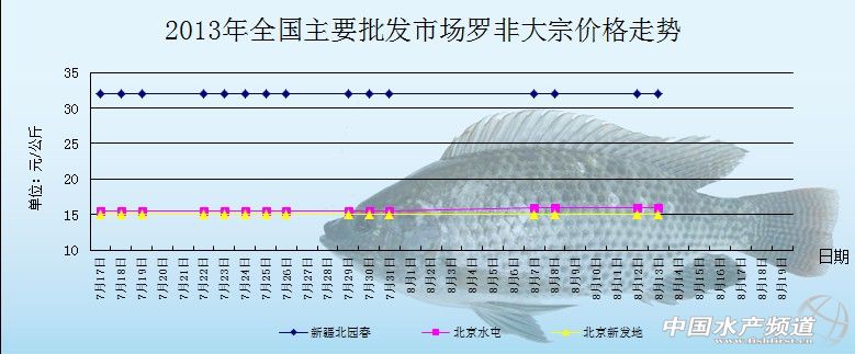 中國水產(chǎn)頻道獨(dú)家報(bào)道,8月13日全國主要批發(fā)市場(chǎng)羅非魚價(jià)格行情如下: 全國主要批發(fā)市場(chǎng)大宗價(jià)格 日期 產(chǎn)品 批發(fā)市場(chǎng) 大宗價(jià)格 單位 8月13日 羅非魚 新疆北園春 32 元/公斤 8月13日 羅非魚 北京新發(fā)地 15 元/公斤 8月13日 羅非魚 北京水屯 16 元/公斤 8月12日 羅非魚 新疆北園春 32 元/公斤 8月12日 羅非魚 北京新發(fā)地 15 元/公斤 8月12日 羅非魚 北京水屯 16 元/公斤 8月9日 羅非魚 新疆北園春 32 元/公斤 8月9日 羅非魚 北京新發(fā)地 15 元/公斤 8月9日 羅非魚 北京水屯 16 元/公斤 8月8日 羅非魚 新疆北園春 32 元/公斤 8月8日 羅非魚 北京新發(fā)地 15 元/公斤 8月8日 羅非魚 北京水屯 16 元/公斤 8月7日 羅非魚 新疆北園春 32 元/公斤 8月7日 羅非魚 北京新發(fā)地 15 元/公斤 8月7日 羅非魚 北京水屯 16 元/公斤 | |||||||||||||||||||||||||||||||||||||||||||||||||||||||||||||||||||||||||||||||||||||