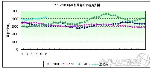 中國水產(chǎn)頻道報道,據(jù)上海益農(nóng)訊, 一、本周市場概述: 2013年第12周(3月15日-3月22日),本周美盤豆類呈先跌后漲。周初受外盤下跌影響,本周國內(nèi)豆類商品跟盤震蕩調(diào)整,而前期上漲的領(lǐng)頭羊豆粕價格在瘋狂漲價后,成為市場中領(lǐng)跌的品種,豆粕現(xiàn)貨價格整體回落。隨后受外盤上漲,國內(nèi)豆粕價格止跌企穩(wěn)。目前豆粕市場的挺價意愿開始減弱,預(yù)計短期內(nèi)有望延續(xù)弱勢局面,國內(nèi)豆粕價格仍有下跌空間。本周國內(nèi)各地工廠43%蛋白豆粕價格整體運行在4047-4350元/噸之間,整周均價呈略跌態(tài)勢,但是仍處于高位運行。 第12周國內(nèi)豆粕現(xiàn)貨市場一周情況:周一,局部下跌;周二,局部上漲;周三,漲跌互現(xiàn);周四,局部上漲;周五,局部略漲。 第12周(CBOT)外盤行情:周一,收盤下跌;周二,收盤下跌;周三,收盤上漲;周四,收盤上漲。 第12周大商所行情:周一,收盤下跌;周二,收盤上漲;周三,收盤上漲;周四,收盤上漲;周五,收盤下跌。 本周主要地區(qū)價格變化(單位:元/噸)
