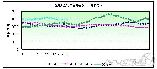 中國(guó)水產(chǎn)頻道報(bào)道,據(jù)上海益農(nóng)訊, 一、本周市場(chǎng)概述: 2013年第19周(5月3日-5月10日),本周受外盤短期供應(yīng)緊俏和美國(guó)作物播種的不確定性等因素提振美豆期貨走高。而國(guó)內(nèi)方面近期禽流感減弱,豆粕下游需求復(fù)蘇可期。所以在內(nèi)外多重利多的因素下,國(guó)內(nèi)豆粕期貨強(qiáng)勢(shì)走高,豆粕現(xiàn)貨價(jià)格止跌回穩(wěn),價(jià)格堅(jiān)挺。預(yù)計(jì)5月中旬以后,南美大豆到港量將顯著增加,而國(guó)內(nèi)油廠的開機(jī)率也將逐步回升,供需改善后對(duì)豆粕期貨行情形成較大壓制,豆粕總體震蕩下行的趨勢(shì)預(yù)計(jì)并未改變。本周國(guó)內(nèi)各地工廠43%蛋白豆粕價(jià)格整體運(yùn)行在3750-4180元/噸之間,整周均價(jià)呈略漲態(tài)勢(shì)。 第19周國(guó)內(nèi)豆粕現(xiàn)貨市場(chǎng)一周情況:周一,局部上漲;周二,局部下跌;周三,局部漲跌互現(xiàn);周四,局部下跌;周五,局部上漲 第19周(CBOT)外盤行情:周一,收盤下跌;周二,收盤上漲;周三,漲跌互現(xiàn);周四,局部上漲 第19周大商所行情:周一,收盤上漲;周二,收盤下跌;周三,收盤上漲;周四,收盤上漲;周五,收盤上漲。 本周主要地區(qū)價(jià)格變化(單位:元/噸)