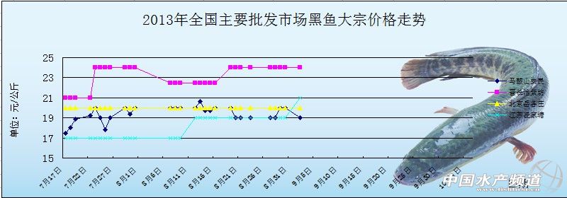 中國水產(chǎn)頻道獨(dú)家報(bào)道, 9月2日全國主要批發(fā)市場(chǎng)黑魚價(jià)格行情如下: