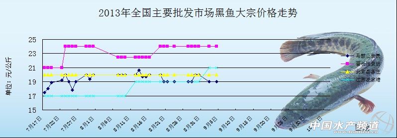 中國水產(chǎn)頻道獨家報道, 9月4日全國主要批發(fā)市場黑魚價格行情如下: