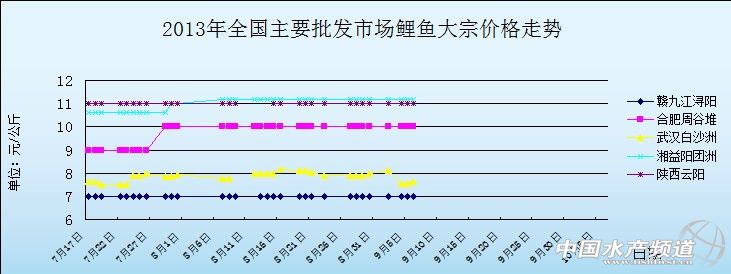 (中國(guó)水產(chǎn)頻道水產(chǎn)價(jià)格信息共享Q群:245296163,歡迎提供各種水產(chǎn)品一線價(jià)格信息!) 【關(guān)鍵字】:鯉魚(yú) 價(jià)格行情 批發(fā)市場(chǎng)