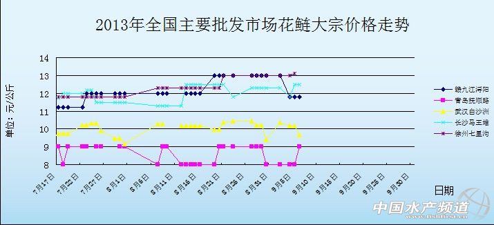 中國水產(chǎn)頻道獨(dú)家報(bào)道,9月6日全國主要批發(fā)市場花鰱價(jià)格行情如下: