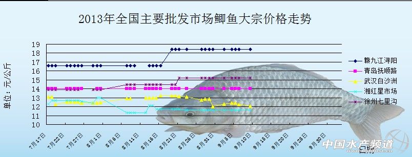 中國水產(chǎn)頻道獨(dú)家報道, 9月10日全國主要批發(fā)市場鯽魚價格行情如下:
