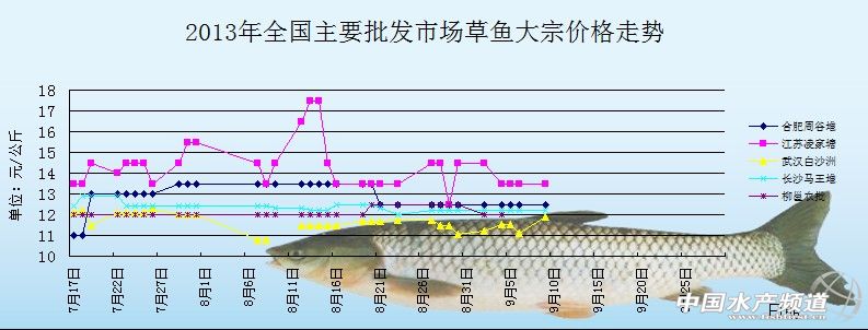 中國(guó)水產(chǎn)頻道獨(dú)家報(bào)道,9月12日全國(guó)主要批發(fā)市場(chǎng)草魚蝦價(jià)格行情如下: