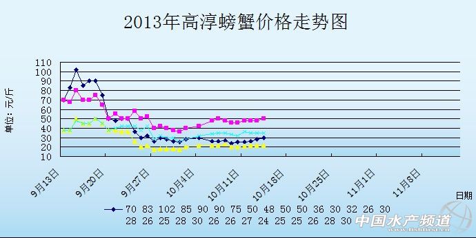 中國(guó)水產(chǎn)頻道獨(dú)家報(bào)道,據(jù)網(wǎng)友提供消息,10月13日江蘇高淳河蟹價(jià)格行情如下: