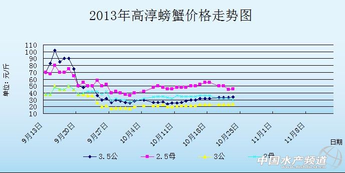 中國(guó)水產(chǎn)頻道獨(dú)家報(bào)道,據(jù)網(wǎng)友提供消息,10月23日江蘇高淳河蟹價(jià)格行情如下: