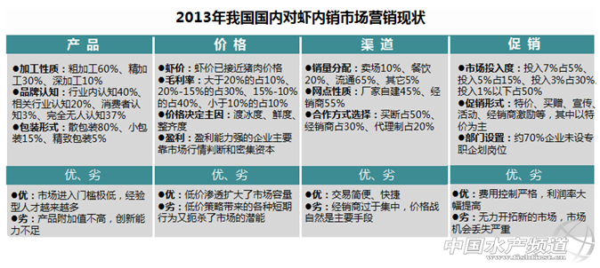 ——原本品牌營銷機構(gòu)研究中心 本文由原本品牌營銷獨家供稿 中國水產(chǎn)頻道獨家報道,近年來全球范圍的蝦病肆虐、臺風(fēng)頻襲,各對蝦產(chǎn)區(qū)產(chǎn)量驟降,對蝦養(yǎng)殖業(yè)屢受重創(chuàng),2013年全球蝦產(chǎn)量比預(yù)期減少23%。我國龐大的對蝦市場供不應(yīng)求,蝦價上漲;水產(chǎn)養(yǎng)殖戶大量囤貨以期獲得更好的蝦類價格,直接導(dǎo)致國內(nèi)市場面臨著蝦價持續(xù)高漲無貨可供的緊張局面。蝦類原料減少致使供求失衡,惡性競爭讓各商家在蝦包冰含量上打主意,致使行業(yè)標(biāo)準(zhǔn)化缺失,種種困境使我國對蝦行業(yè)發(fā)展舉步維艱,對蝦產(chǎn)業(yè)洗牌一觸即發(fā),對蝦行業(yè)形勢異常嚴(yán)峻。 從全球來看,對蝦產(chǎn)業(yè)經(jīng)歷了從1992年全球產(chǎn)量1百萬噸,到2010年的將近400萬噸的持續(xù)增長發(fā)展期,也經(jīng)歷了從2010后到2012年減產(chǎn)9.7%的衰退期。2013年,由于蝦病肆虐,導(dǎo)致東南亞產(chǎn)區(qū)對蝦產(chǎn)量至少下降40%,墨西哥產(chǎn)量下滑,最大原料市場泰國今年蝦產(chǎn)量嚴(yán)重不足根本無法滿足大量國外市場的供應(yīng)。2013年泰蝦產(chǎn)量25萬噸,大幅低于去年的54萬噸,重挫達54%,出口量大跌38%,輸出價值減少29%。 值得一提的是,由于深受金融危機影響,美國對蝦產(chǎn)業(yè)嚴(yán)重不景氣,美國商務(wù)部于2013年5月30日發(fā)布了對中國冷凍暖水蝦反補貼中國企業(yè)稅率為5.76%的初裁結(jié)果。此次“反補貼稅”事件曾被原本品牌營銷機構(gòu)譽為我國蝦業(yè)發(fā)展的“分水嶺事件”,部分對蝦企業(yè)開始把目光轉(zhuǎn)移到了龐大的國內(nèi)消費市場。 龐大的水產(chǎn)品內(nèi)銷市場,增加了國內(nèi)對蝦生產(chǎn)的積極性。2012年,我國對蝦總產(chǎn)量382萬噸,其中養(yǎng)殖蝦類總產(chǎn)量242萬噸,占比63%;養(yǎng)殖對蝦產(chǎn)量153萬噸,占養(yǎng)殖蝦總產(chǎn)量比重63%。受歐美地區(qū)經(jīng)濟持續(xù)低迷影響,2013年亞洲各國對蝦產(chǎn)區(qū)、出口為主的對蝦企業(yè)不堪重負(fù),虧損嚴(yán)重,也紛紛開始轉(zhuǎn)型瞄準(zhǔn)中國龐大的內(nèi)銷市場。 2013年我國生產(chǎn)的對蝦,85%靠內(nèi)銷,進口數(shù)量呈增長趨勢。據(jù)原本品牌營銷機構(gòu)調(diào)研顯示,我國北方生產(chǎn)的對蝦幾乎國內(nèi)消費,華東地區(qū)內(nèi)銷量超過95%。另一方面,由于美國、歐洲等國外對蝦主要消費市場需求正在萎縮,中國正在從一個對蝦出口大國轉(zhuǎn)變成為對蝦進口大國,我國對蝦內(nèi)銷市場也逐漸成為全球蝦企爭鋒的主戰(zhàn)場。 2013年我國對蝦市場貨源緊缺、價格飛漲,導(dǎo)致部分蝦企瘋狂涌入越南以充實貨源。據(jù)越南海關(guān)提供的數(shù)據(jù),8月份越南蝦出口上漲近200%。一方面水產(chǎn)養(yǎng)殖戶大量囤貨以期獲得更好的蝦類價格,海產(chǎn)品加工公司無法獲取重組的原料,兩者之間的供求平衡被打破,最終導(dǎo)致蝦類價格越上漲,采購商越是爭相搶購,市場存量極低的緊張局面。另一方面蝦類原料的減少,供求關(guān)系出現(xiàn)失衡,惡性競爭讓各商家在蝦包冰含量上打主意,致使行業(yè)標(biāo)準(zhǔn)化嚴(yán)重缺失。 數(shù)據(jù)顯示,對蝦在全球水產(chǎn)貿(mào)易中占到了15%的比重,居全球水產(chǎn)貿(mào)易額的首位。國內(nèi)市場近 200萬噸的市場需求,意味著一個近千億級的市場規(guī)模;對蝦行業(yè)卻是一個缺乏品牌差異化、缺乏主力產(chǎn)品、缺乏系統(tǒng)營銷的弱質(zhì)市場。最大的對蝦企業(yè)國聯(lián)水產(chǎn)年銷售額不過12億左右,其中還有約10億是出口美國,國內(nèi)銷售只有2億左右,也就是說這家領(lǐng)軍企業(yè)占據(jù)國內(nèi)市場的份額不過千分之二,與高端海珍品海參品類市場形成了巨大的差異。對蝦企業(yè)的品牌意識淡薄,營銷方法落后,產(chǎn)品和渠道脫節(jié)等問題困擾著內(nèi)銷潛力的挖掘。 從我國對蝦消費市場來看,我國對蝦增長量遠(yuǎn)落后于經(jīng)濟增長量,更大大落后于中國餐飲業(yè)連續(xù)五年保持15%以上增長水平。按每公斤80條對蝦計算,我國人均一個星期才吃“一條蝦”,與日本每天人均“兩條蝦”相差15倍之多,與國內(nèi)人均每天食用肉制品100g相差56倍之多。原本品牌營銷機構(gòu)認(rèn)為,我國國內(nèi)對蝦消費市場產(chǎn)品同質(zhì)化、營銷初級、缺乏大眾認(rèn)知,對蝦內(nèi)銷市場尚存在大量消費空白,國內(nèi)對蝦未來消費增長空間潛力巨大。 國內(nèi)對蝦企業(yè)營銷瓶頸及破局方向: 品牌弱質(zhì)化,品牌力孱弱,品牌戰(zhàn)略缺失,品牌價值空虛,品牌形象蒼白——創(chuàng)建差異化品牌,以品牌戰(zhàn)略創(chuàng)建品牌地位是打破瓶頸的主要手段; 產(chǎn)品的同質(zhì)化,缺乏產(chǎn)品差異化開發(fā)及賣點提煉,缺乏與消費需求的對接,缺乏獨特的產(chǎn)品主張,缺乏產(chǎn)品的營銷生命——構(gòu)建大單品,打造以大單品為主力細(xì)分品類的產(chǎn)品化營銷新勢力; 銷售的渠道化,企業(yè)營銷系統(tǒng)缺失,過渡依賴渠道推廣,渠道營銷粗放,終端推廣失效——充分發(fā)揮渠道力量,建設(shè)協(xié)同渠道,構(gòu)建特定渠道的競爭力是破局的主要策略; 營銷的粗放化,營銷思維僵化,營銷方法粗暴,營銷組合