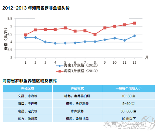 文/圖 通威股份有限公司技術(shù)中心 孫瑞健 張璐 米海峰 陳效儒 中國水產(chǎn)頻道獨家報道,羅非魚在中國大陸的養(yǎng)殖主要集中在廣東、廣西和海南等地區(qū)、其中海南地區(qū)約占全國總產(chǎn)量的20%。海南省年平均氣溫22-25.5℃,雨量充沛,光照充足,羅非魚全年都可以生長,并可自然越冬。水質(zhì)條件優(yōu)良,擁有良好的養(yǎng)殖生態(tài)環(huán)境。 海南省擁有幾十家羅非魚優(yōu)質(zhì)苗種場,羅非魚加工企業(yè)30多家,主要分布在?谑小⑽牟械。2006年海南水產(chǎn)品加工能力達50萬多噸,有37家企業(yè)獲準(zhǔn)了國內(nèi)外各類質(zhì)量認(rèn)證,其中30家獲得HACCP認(rèn)證,10家獲得歐盟注冊。 本文作者孫瑞健 一、養(yǎng)殖現(xiàn)狀 1、養(yǎng)殖面積及產(chǎn)量 2003年以來,海南羅非魚產(chǎn)業(yè)發(fā)展迅猛,到2011年底,羅非魚養(yǎng)殖面積達45.6萬畝,其中池塘養(yǎng)殖29.6萬畝,水庫養(yǎng)殖16萬畝,養(yǎng)殖總產(chǎn)量達31.7萬噸。羅非魚出口成為海南第一大出口創(chuàng)匯農(nóng)產(chǎn)品。 2、養(yǎng)殖區(qū)域 海南羅非魚養(yǎng)殖主要集中在文昌市、瓊海市等幾個核心區(qū)域,以精養(yǎng)魚塘為主,羅非魚養(yǎng)殖歷史悠久,養(yǎng)殖戶技術(shù)水平高,飼料投喂量大,產(chǎn)量高。在?、屯昌、東方等全島區(qū)域均有羅非魚的養(yǎng)殖水面,但養(yǎng)殖模式有較大區(qū)別,海口有部分養(yǎng)殖戶采用魚蝦混養(yǎng)模式。東方市等海南西線地區(qū)池塘水面小,多為魚鴨或魚豬混養(yǎng),前期主要投喂動物糞便,后期使用人工配合飼料;而屯昌、定安等區(qū)域多為水庫放養(yǎng)。 賣魚 3、 飼料品牌與銷量 海南羅非魚飼料品牌眾多,主流品牌有:通威、裕泰、新希望、統(tǒng)一和恒興等,2012年飼料銷量及市場份額見下表。近幾年,多家水產(chǎn)料企業(yè)和海南本土優(yōu)秀企業(yè)強勢進入,如粵海、海大、百洋和翔泰等,預(yù)計2014年海南羅非魚飼料市場競爭將更趨于白熱化。海南羅非魚料市場格局未來幾年內(nèi)或?qū)l(fā)生改變,飼料銷售與成魚回收加工相結(jié)合的運作模式,正逐漸成為企業(yè)打拼這個市場的有力手段。 4、羅非魚養(yǎng)殖成本及效益 羅非魚養(yǎng)殖成本主要有飼料、池塘租金、魚種、藥物、水電、人工(拉網(wǎng)、干池成本)等,進行成本分析有利于指導(dǎo)養(yǎng)殖戶準(zhǔn)備養(yǎng)殖所需資金,作出合理的養(yǎng)殖規(guī)劃。羅非魚養(yǎng)殖成本約4.13元/斤,2012年魚價十分低迷,長期維持在3.8-3.9元/斤,養(yǎng)殖戶面臨虧本。而2013年羅非魚價格堅挺,10月份以后魚價基本維持在5元/斤以上,養(yǎng)殖戶利潤可觀,投料熱情高漲。 5、經(jīng)銷商及養(yǎng)殖戶 海南羅非魚飼料的銷售網(wǎng)絡(luò)高度集中,基本集中在文昌市的少數(shù)幾個大的經(jīng)銷商,其中就包括位于?谑写笾缕骆(zhèn)的海南區(qū)域最大經(jīng)銷商——建一水產(chǎn)股份有限公司,2013年銷量預(yù)計在5-6萬噸,并于上半年成功在天交所上市融資,后續(xù)發(fā)展勢頭依舊迅猛。海南經(jīng)銷商傳統(tǒng)的經(jīng)營模式是負(fù)責(zé)飼料的銷售,并提供收魚的服務(wù),運作這一小型產(chǎn)業(yè)鏈模式,但資金壓力和風(fēng)險較大。 主養(yǎng)區(qū)精養(yǎng)池塘主要群體為浙江人,勤勞能干,精打細算,接受新事物的能力較強,是一批非常優(yōu)秀的養(yǎng)殖群體。其他區(qū)域多數(shù)養(yǎng)殖戶為海南本地人,養(yǎng)殖面積較小,多為粗放式養(yǎng)殖,投入較少,配套設(shè)施和管理意識薄弱,養(yǎng)殖水平較低。近幾年鏈球菌的肆虐,發(fā)病率高,造養(yǎng)殖效益薄,風(fēng)險大。 二、主要養(yǎng)殖模式分析 海南省羅非魚養(yǎng)殖模式主要有池塘養(yǎng)殖、網(wǎng)箱養(yǎng)殖、水庫網(wǎng)箱養(yǎng)殖和水庫放養(yǎng)等。全島各地的養(yǎng)殖模式如下表所示。其中池塘精養(yǎng)技術(shù)含量最高,飼料使用量最大。下文主要介紹文昌、瓊海等區(qū)域精養(yǎng)池塘的養(yǎng)殖模式。 1、池塘條件: 一般為土塘,底層為土質(zhì)或沙石,養(yǎng)殖面積大都在10-30畝左右,水深多在2.5-5米左右,每5-10畝配備一臺增氧機,一個池塘配置一臺投餌機。水源因地而異,有的使用水庫進水,有的靠天然降水,采用“老水”進行養(yǎng)殖。 2、養(yǎng)殖流程: 。1)放苗前處理:采用“老水”或者注入新水,一般用生石灰消毒處理。 。2)放苗情況:多數(shù)養(yǎng)殖戶會配備一口小塘用于標(biāo)苗,投喂粉料或者破碎料,一般標(biāo)苗至規(guī)格在20-100尾/斤,放入大塘精養(yǎng)。 。3)放養(yǎng)密度:依據(jù)養(yǎng)殖戶的技術(shù)水平和池塘條件而定,多數(shù)在2000-2500尾/斤,套養(yǎng)魚種為花鰱和白鰱,主要用于調(diào)水。 (4)日常管理:一般采取八成飽食投喂法,具體投喂量依據(jù)天氣等狀況而定,普遍投喂頻率為2次/天,上午9:00,中午13:00。多數(shù)養(yǎng)殖戶會在中午時分開增氧機1個小時,另外巡塘發(fā)現(xiàn)羅非魚有浮頭現(xiàn)象,也會開增氧機。目前大部分養(yǎng)殖戶投喂28%蛋白的顆粒飼料,部分養(yǎng)殖戶會在養(yǎng)殖后期使用28%蛋白膨化料,加快上市,全程使用膨化料的養(yǎng)殖戶偏少,但是膨化料使用量正在增加,膨化料替代顆粒料是海南羅非魚市場的一個大趨勢。 。5)干塘出魚: