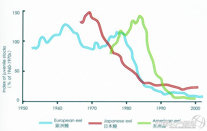 臺灣連續(xù)3年歉收的日本鰻線,在2013-2014年產(chǎn)季卻又突然豐收,估計可達7噸左右。雖然日本科學(xué)家已找到日本鰻產(chǎn)卵場,并已成功人工孵化,但尚未具商業(yè)價值,日本鰻的柳葉鰻時期的生態(tài)至今仍是個謎,鰻線資源增減的原因連專家也不能肯定。 文/圖 臺灣《養(yǎng)魚世界》 鄭石勤 中國水產(chǎn)頻道獨家報道,淡水鰻為降海洄游性魚類,在分類學(xué)上屬于鰻鱺目(Anguilliformes),鰻鱺科(Anguillidae),鰻鱺屬(Anguilla)。臺灣的淡水鰻有5個鰻魚品種,分別是日本鰻(A. japonica)、鱸鰻(A. marmorata)、呂宋鰻(A. luzonensis)、太平洋雙色鰻,以及近年才發(fā)現(xiàn)的數(shù)量較少的偶來種——西里伯斯鰻(A. celebesensis)。[注1] 在臺灣產(chǎn)的5種淡水鰻之中,最重要的莫過于日本鰻,日本鰻的生命從受精卵開始,經(jīng)過柳葉鰻、玻璃鰻、鰻線、黃鰻和銀鰻等六個階段。 1.卵期:位于深海產(chǎn)卵地。 2.柳葉鰻:在大洋隨洋流長距離漂游,此時身體扁平透明,薄如柳葉便于隨波逐流。 3.玻璃鰻:在接近沿岸水域時,身體轉(zhuǎn)變成流線型,減少阻力,以脫離強勁洋流。 4.鰻線:進入河口水域時,開始出現(xiàn)黑色素。這形成養(yǎng)殖業(yè)鰻苗的捕捉來源。 5.黃鰻:在河川的成長期間,魚腹部呈現(xiàn)黃色。 6.銀鰻:在成熟時,魚身轉(zhuǎn)變成類似深海魚的銀白色,同時眼睛變大,胸鰭加寬,以適應(yīng)洄游至深海產(chǎn)卵。 最早,科學(xué)家并不知道日本鰻是在海里產(chǎn)卵,只知道每年冬季有大量的玻璃鰻來到河川入?,然后進入河川里長成黃鰻。 過去臺灣養(yǎng)殖所需鰻線不足時,會自港澳地區(qū)引進,而幼鰻、鰻苗則來自日本及韓國。鰻苗依規(guī)格大小可區(qū)分為三類:鰻線(Glass eel)為每公斤5000尾以上體型者;鰻苗(Eel fry)為每公斤500-5000尾規(guī)格;幼鰻(Young eel)每公斤11-500尾。 日本鰻產(chǎn)卵場遠在三千公里外 第一個揭開鰻魚(歐洲鰻)生活史神秘面紗的是丹麥的約翰尼史密特(Johannes Schmidt),他發(fā)現(xiàn)丹麥境內(nèi)的歐洲鰻是從美國佛羅里達東方的藻海(Sagosso Sea)誕生后,漂流到丹麥的,這個發(fā)現(xiàn)也引發(fā)日本人自1930年代起尋找日本鰻產(chǎn)卵場的熱潮。 日本科學(xué)家1968年在日本南方海域捕獲體長60mm的柳葉鰻,1975年在臺灣東方海域捕獲52尾50mm左右的柳葉鰻,1986年在菲律賓東方捕獲21尾40mm柳葉鰻,1991年在馬里亞納島西側(cè)采捕到1000多尾10mm的前期柳葉鰻,這年所采到的前期柳葉鰻體型非常小,顯示日本鰻產(chǎn)卵場就在馬里亞納海溝西側(cè)。 日本鰻產(chǎn)卵場的尋找看似簡單,其實是在嘗試和錯誤之后,花很長的時間才找到的。日本研究鰻魚的泰斗松井魁博士認為,產(chǎn)卵場應(yīng)該在臺東部的沖繩海溝附近。東京大學(xué)田中昌一教授為了證實,1972年曾在臺灣東部進行柳葉鰻采集調(diào)查,結(jié)果只找到大型柳葉鰻。臺灣研究鰻魚的權(quán)威前水產(chǎn)試驗所鹿港分所所長郭河,也曾判斷日本鰻產(chǎn)卵場是在臺灣西南部琉球海溝附近。 先前各種產(chǎn)卵場的誤判,是因為當時不了解日本鰻的生活史、仔稚魚的成長過程及海流構(gòu)造所導(dǎo)致,過去甚至還認為鰻魚是在冬季產(chǎn)卵。 直到1980年以后,由于科技的進步,經(jīng)由鰻魚耳石周輪的研究,才逐漸進一步認識日本鰻的生活史。原來,日本鰻受精卵從孵化到鰻線要經(jīng)過半年的時間,每年(西歷)12月至1月在臺灣沿海出現(xiàn)的大量鰻線是半年前的夏天出生的,由海上漂流和洋流速度推算,日本鰻的產(chǎn)卵場距離臺灣非常遙遠。 長期研究鰻魚生態(tài)的臺灣大學(xué)名譽教授曾萬年指出,由耳石日周輪可以推測出鰻魚苗的魚齡、孵化日及生產(chǎn)速率。受精卵孵化后的卵黃囊期有5天,之后才開口攝餌。因此,由觀查到的日周輪數(shù)再加5天,就是鰻魚的出生日。 1991年日本東京大學(xué)白鳳丸試驗船在馬里亞納島西側(cè)海域捕獲一千多尾柳葉鰻。經(jīng)耳石周輪觀查得知,這批魚苗的出生日都集中在5月的新月當天,或6月新月后1-3天。“很巧合有趣的是,臺灣鰻魚漁汛的高峰期也是在滿月前后!痹f年說。 全世界兩萬多種魚類之中,只有鰻鱺目、囊鰓鰻目、海鰱目及北梭魚目等四個目的魚類在早期發(fā)育期會經(jīng)過柳葉魚階段,這四個目的魚類體型差異極大,但是DNA序列證明四個目的血緣關(guān)系很近。在分類學(xué)上,它們有共同的祖先,學(xué)者因此推論淡水鰻的祖先是從深海魚類演化而來。 鰻線捕撈方法 臺灣地區(qū)每年的日本鰻鰻苗汛期自西歷10月下旬開始,隔年3月下旬結(jié)束,12月到2月是盛產(chǎn)期。四周沿海河口都會出現(xiàn)各個種類的鰻魚苗,但主要的品種以鱸鰻及日本鰻為主。整體而言,日本鰻線以宜蘭縣產(chǎn)量最多。根據(jù)曾萬年教授的研究,臺北淡水河口的鰻線捕獲比例是日本鰻多鱸鰻少,日本鰻占81%,鱸鰻17.8%;屏東縣的東港溪則正好相反,日本鰻29.7%,鱸鰻64.9%;花連縣的秀姑巒溪則大多是鱸鰻,占97.1%。 臺灣三條河流捕獲的鰻線種類比例圖(仿自韓玉山) 由于各地氣候不同,直接影響了捕捉鰻苗的方法,西部臺灣海峽沿海大致上可以曾文溪出?冢ㄅ_南安南區(qū))為準,區(qū)分為海峽南部、北部。海峽北部由于東北季風(fēng)迎風(fēng)面的關(guān)系,冬季時海浪增大,漁船出海不易,漁民大多是在岸邊或是內(nèi)