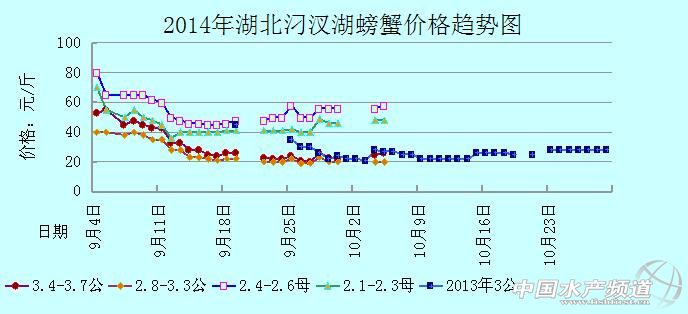 中國水產(chǎn)頻道獨家報道,據(jù)網(wǎng)友提供消息,2014年10月5日湖北汈汊湖主產(chǎn)區(qū)河蟹價格行情如下: 湖北漢川汈汊湖河蟹信息由湖北漢川天歌螃蟹養(yǎng)殖專業(yè)合作社曾先生(13508632620)提供,由于價格波動及訂貨量影響,以上價格為行情價格,實際價格請聯(lián)系電話。 |